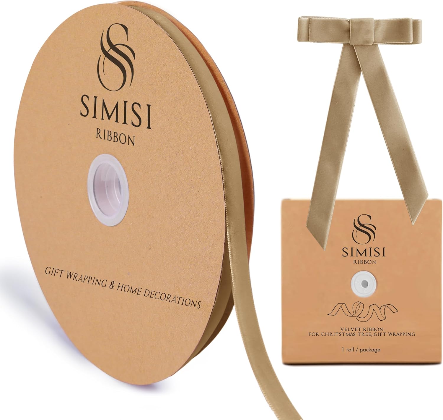Khaki Velvet Ribbon 3/8'' 25 Yards for Christmas Tree, Gift Wrapping, Flower Bouquet, Wreath Decorations, Bow Making