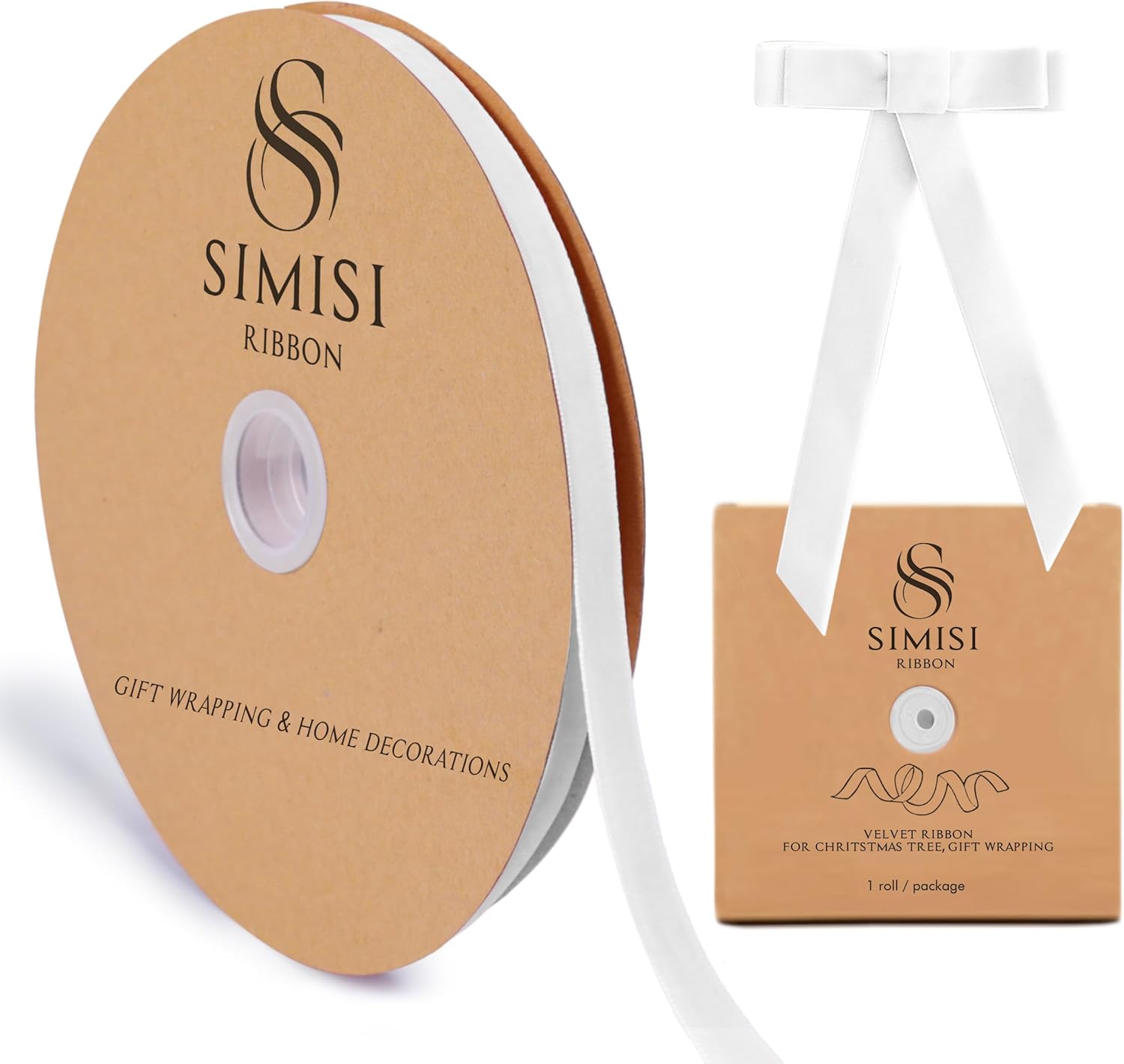 White Velvet Ribbon 3/8'' 25 Yards for Christmas Tree, Gift Wrapping, Flower Bouquet, Wreath Decorations, Bow Making