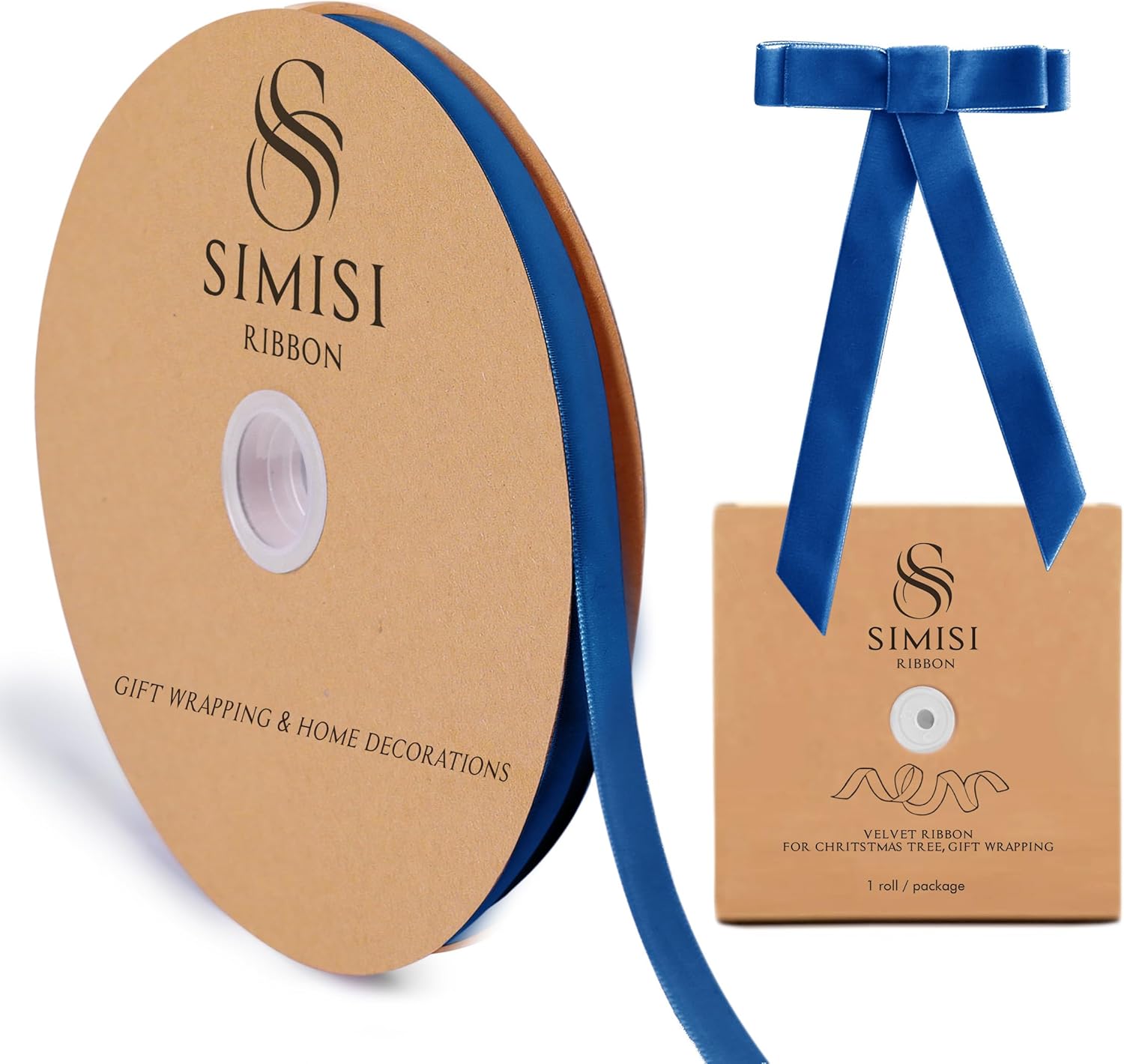 Royal Blue Velvet Ribbon 3/8'' 25 Yards for Christmas Tree, Gift Wrapping, Flower Bouquet, Wreath Decorations, Bow Making