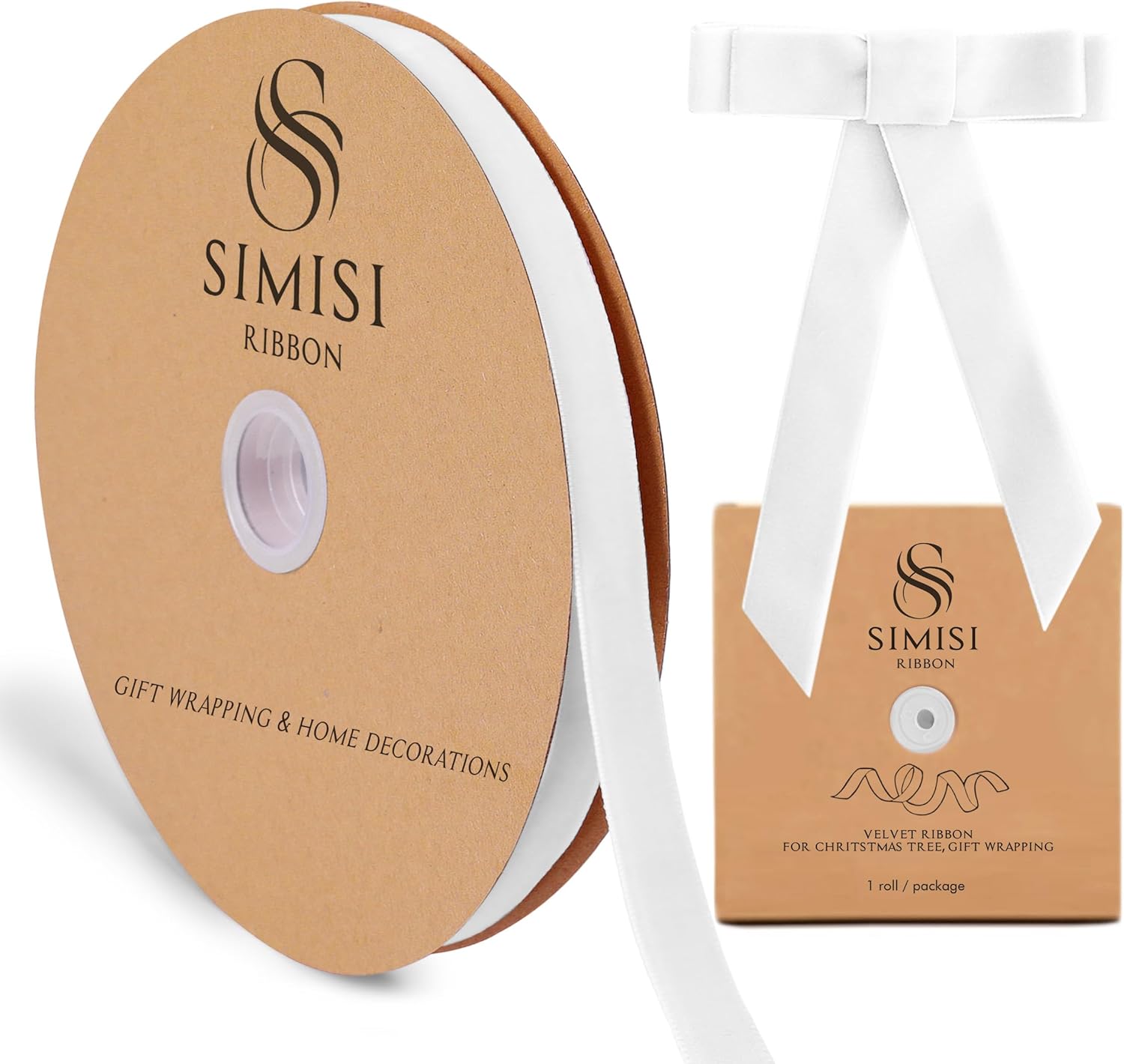 White Velvet Ribbon 5/8'' 25 Yards for Christmas Tree, Gift Wrapping, Flower Bouquet, Wreath Decorations, Bow Making