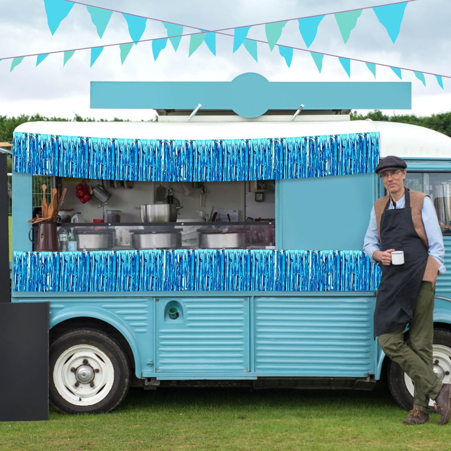 4 Pack 10 Feet Lake Blue Foil Fringe Garland Metallic Tinsel Streamers Banner Wall Hanging Curtain Backdrop for Parade Floats, Wedding, Graduate, Mother's Day, Birthday Party Decoration