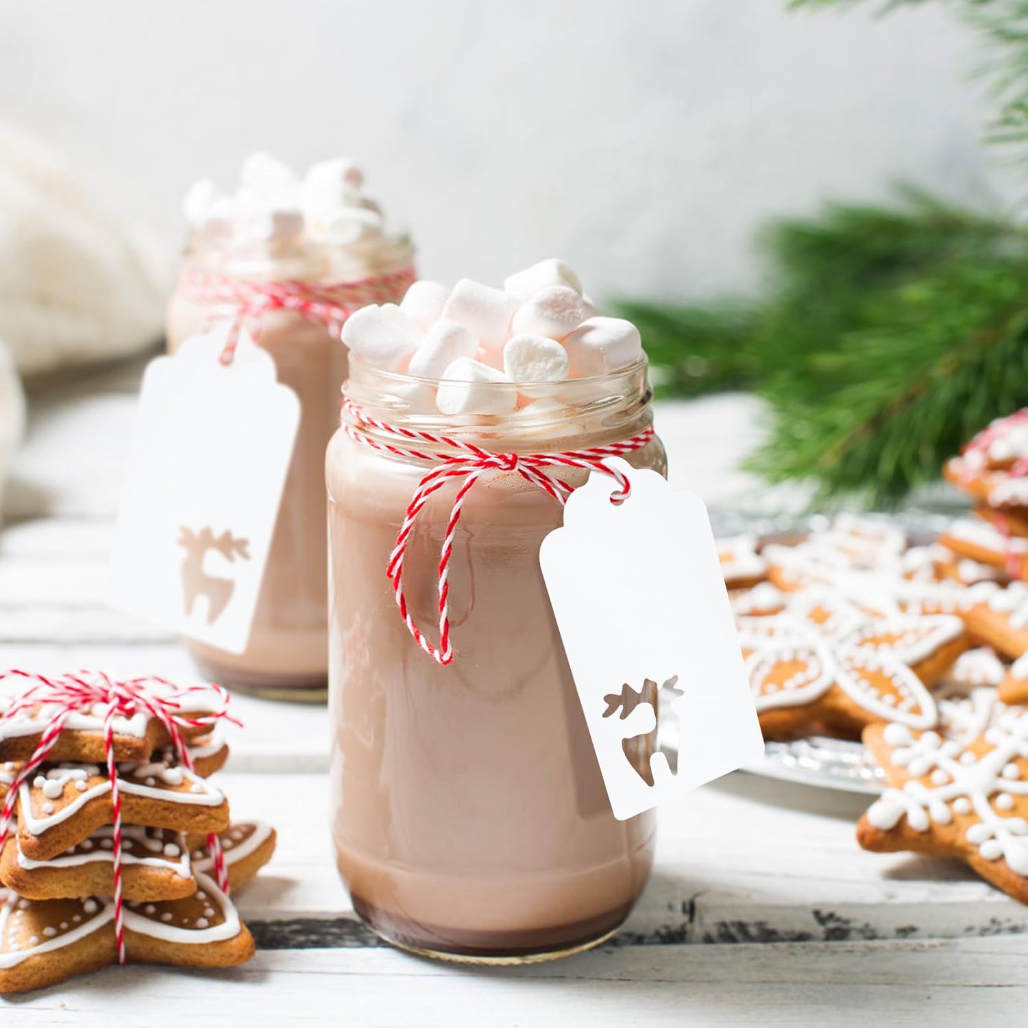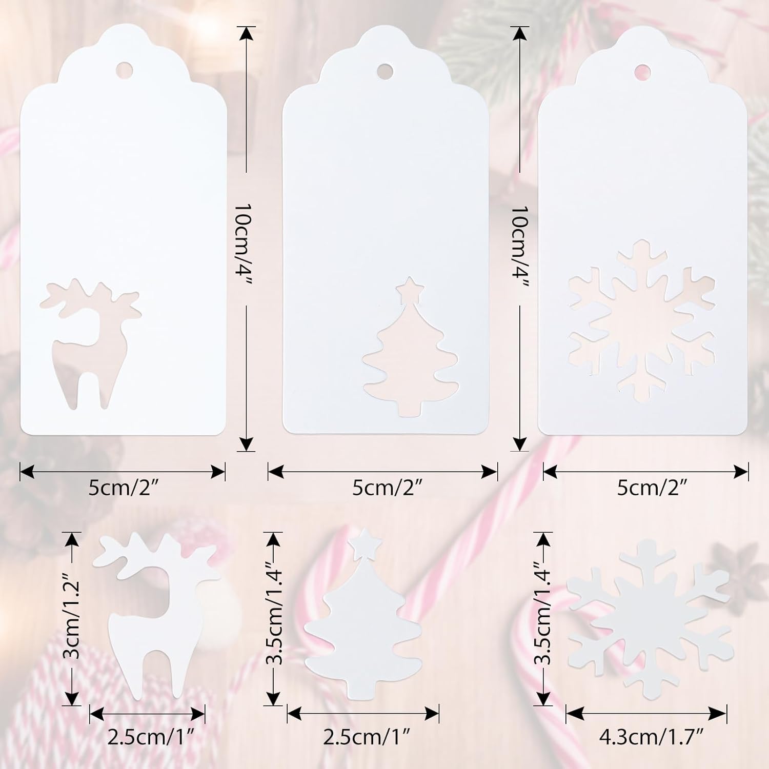 jijAcraft Christmas Gift Tags - 150Pcs Christmas Tags with String, Blank White Paper Hollow Trees, Rudolph, Snowflake Shapes Holiday Labels for Xmas Party Favors, DIY Crafts, Jar