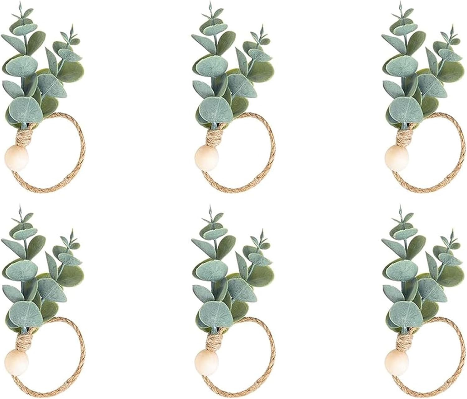 - 【Premium Napkin Rings Set of 6】: The wooden bead napkin rings are made of faux eucalyptus, wooden beads and linen.Crafted with meticulous attention to detail, our napkin rings are made with high-quality materials. The combination of large wooden beads and sturdy hemp rope ensures exceptional durability, while providing a delightful tactile experience.