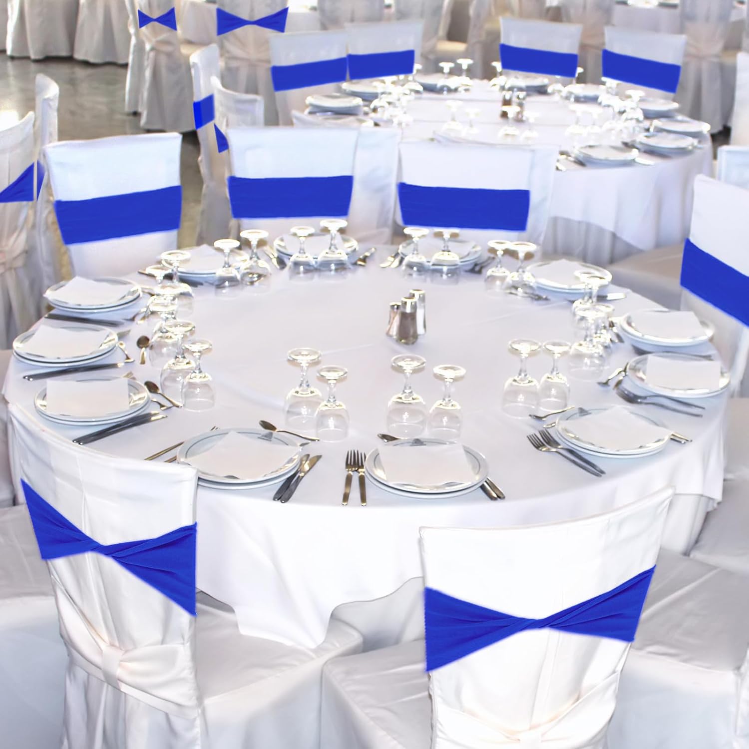 Kinlop 50 Pcs Spandex Chair Sashes Bows Chair Bands Slider Sashes for Covers Elastic Bands Ties Without Buckle Decorations for Wedding Party Events Ceremony Birthday(Blue)