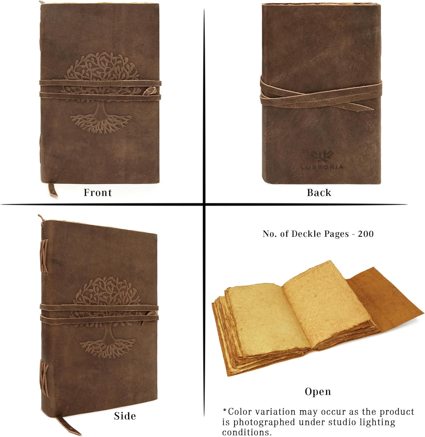 LUXEORIA Tree Of Life Leather Journal for Women and Men, Handcrafted Leather Journal for Writing Womens, Sketchbook, Travel Diary with Unlined Deckle Paper, Distressed Brown 8x13