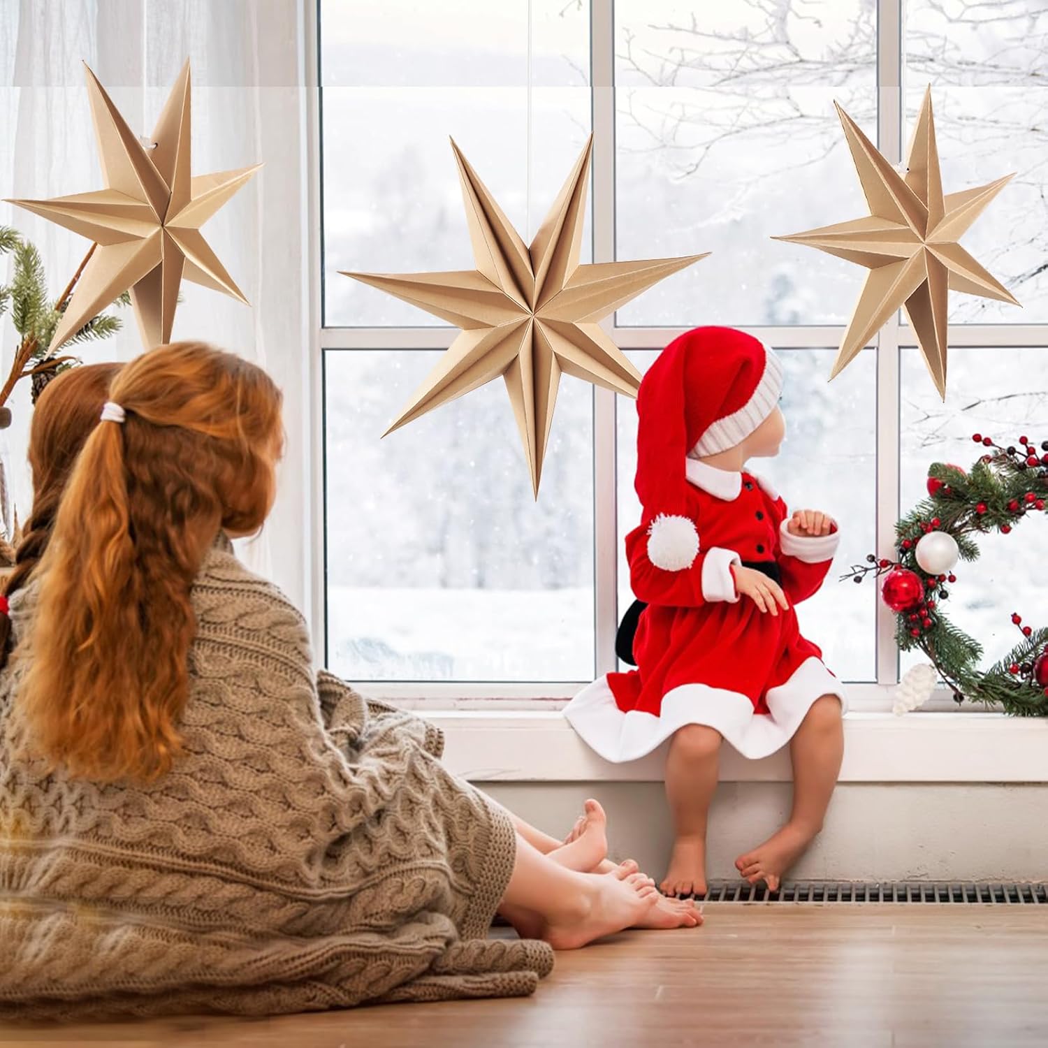- ⭐️Ideal Size: These star-shaped decorations measure approximately 30cm (12 inches), making them a perfect size for indoor or covered outdoor use. They can be hung in your living room, entryway, or anywhere else you want to add a festive touch to your Christmas decor.