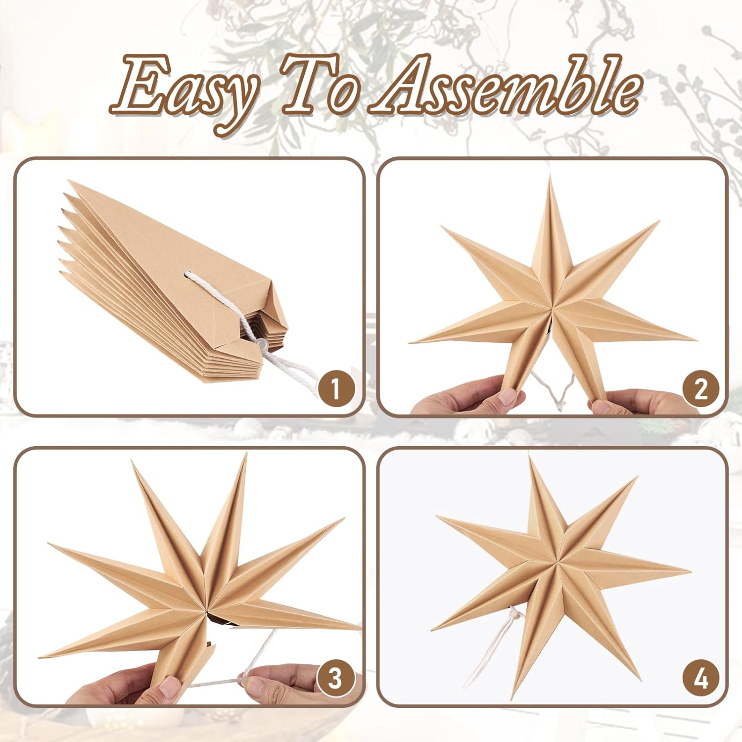 - ⭐️Versatile Holiday Decoration: These natural paper star-shaped decorations are not only perfect for Christmas, but also ideal for other occasions such as weddings, parties, and themed events. Their warm light and unique design create an inviting ambiance that is sure to impress your guests.