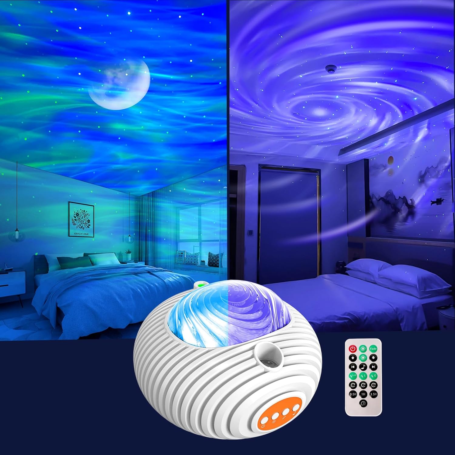 - BUILT-IN WHITE NOISE AND PIANO SONGS: This Aurora projector comes with 3 types of white noise including insects, running water, ocean waves and 2 soft piano songs so you can create the perfect background sound for meditation, relaxation or lulling your child to sleep.