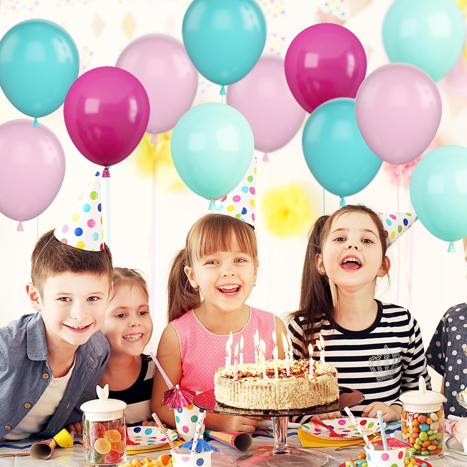 - Package Included : Our hot pink and teal blue birthday balloons set includes 60 pcs 12 inch latex balloons. 15 pcs hot pink balloons, 15 pcs pastel teal blue balloons, 15 pcs macaron pink balloons, 15 pcs teal blue balloons and 2 pcs hot pink ribbons