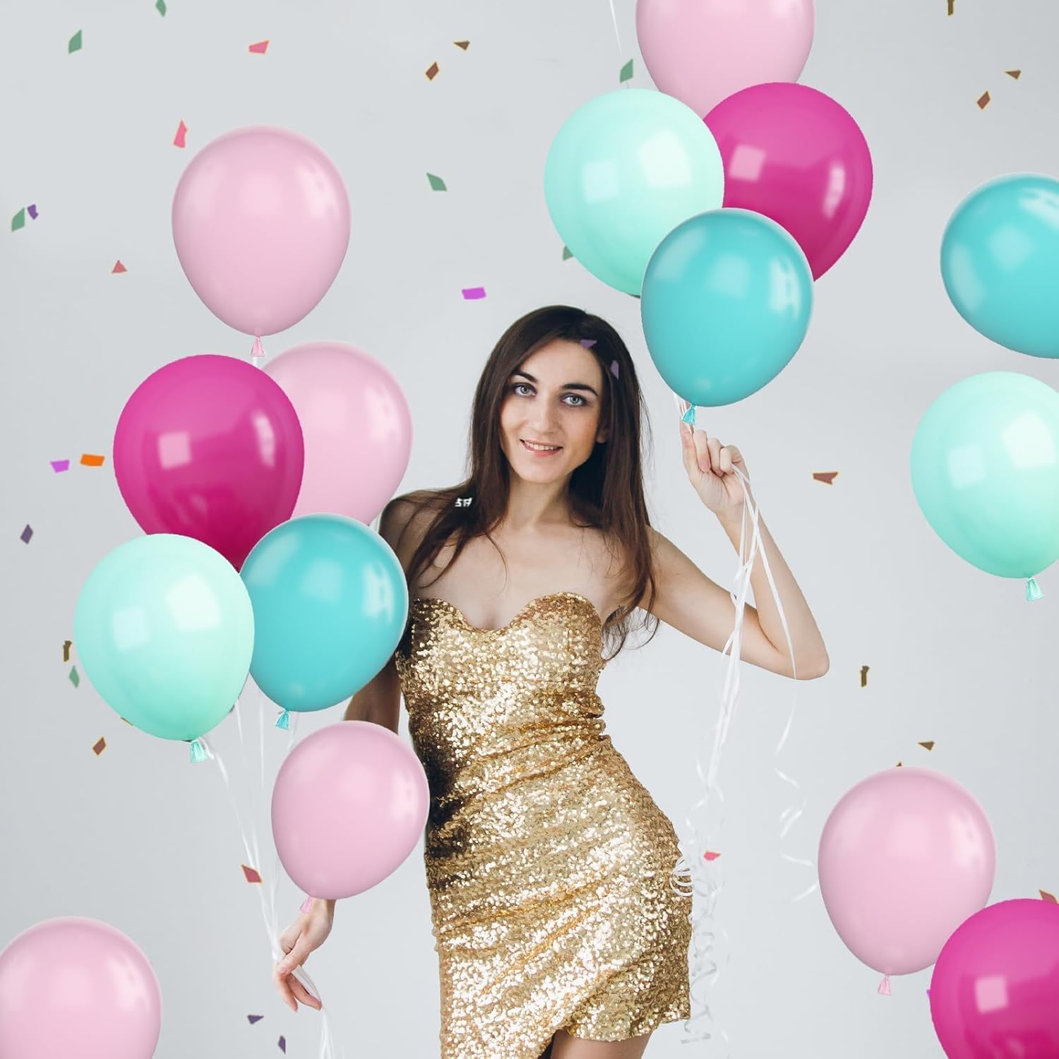 - Easy to Use: The pink teal balloons supporting both air and helium. When filled with helium, they gracefully float in the air, adding an extra enchanting element to your celebrations. Please note: helium is not included in the package