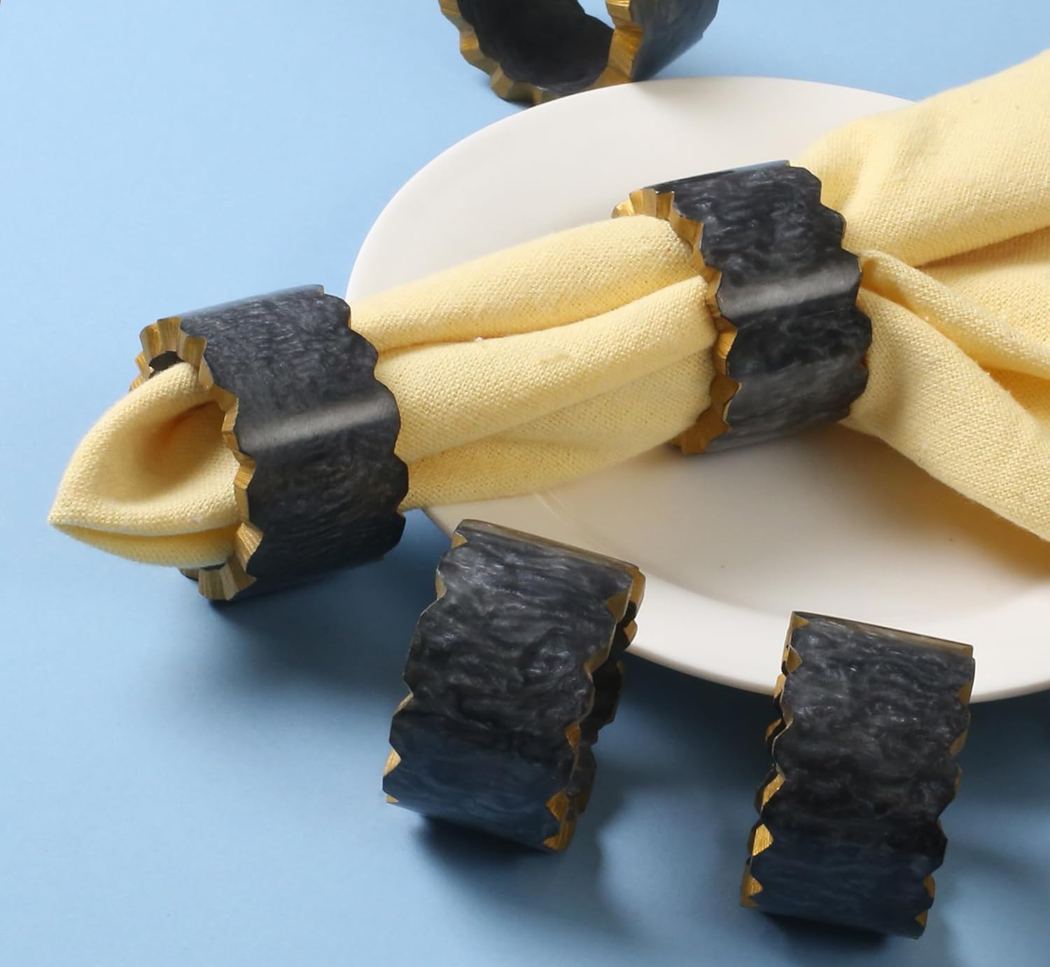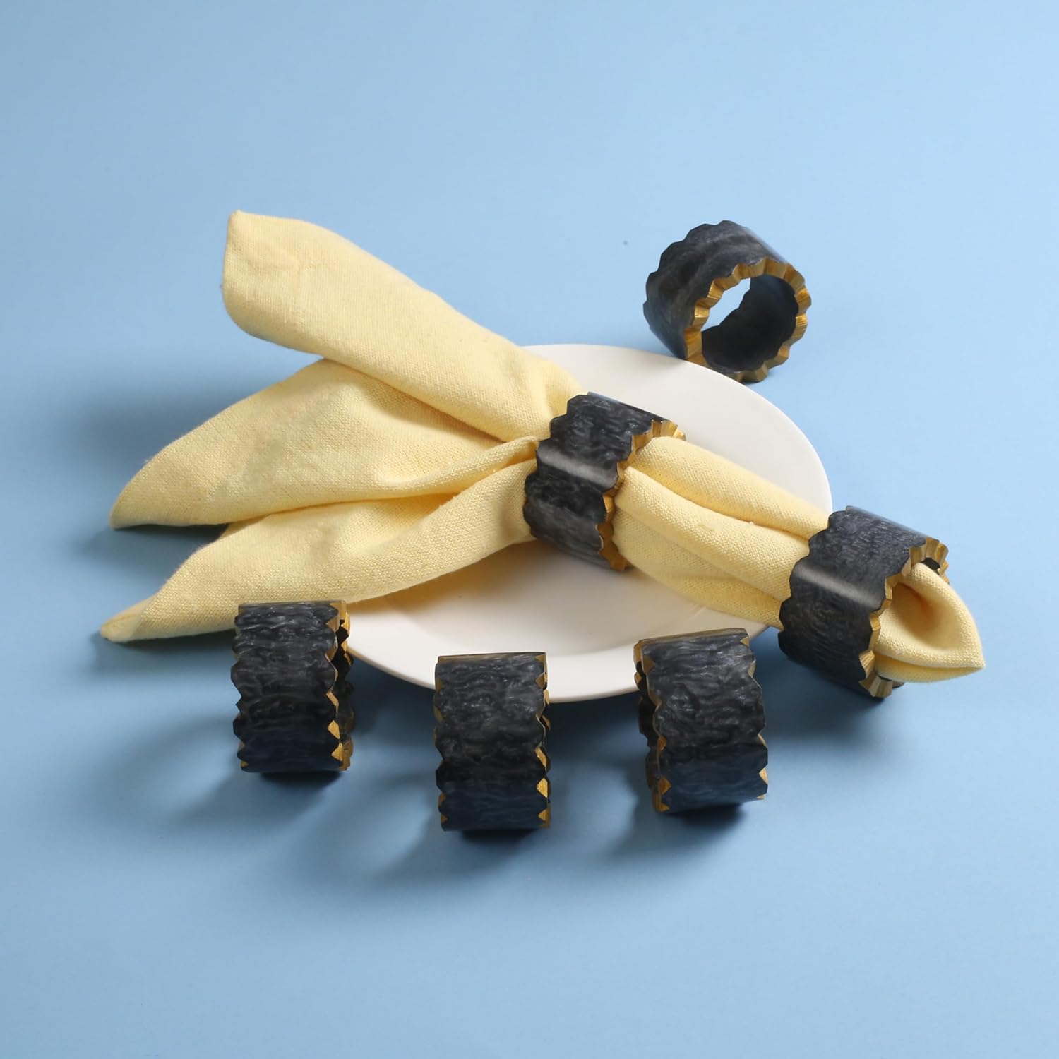 Epoxy Resin Napkin Holders for Cloth Napkins - 6 Pcs Elegant Napkin Holders for Dining Table Decor, Parties, Weddings & Holidays - Modern Tabletop Accessory (Black Gold) - CLEENTABLE