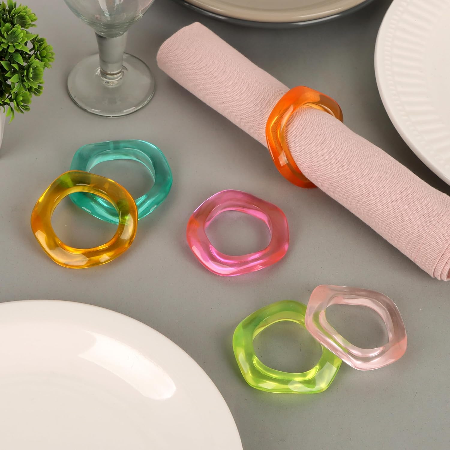 Epoxy Resin Spring Napkin Rings Set of 12 - Irregular Napkin Holders for Dining Table, Party Decor, Weddings, Everyday Use, Elegant Tabletop Accents (Multi Pastel) - CLEENTABLE