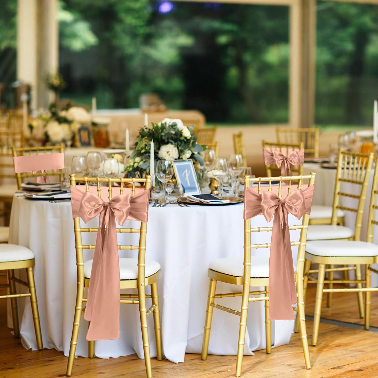 10 PCS Rose Gold Satin Chair Sashes Bows Universal Chair Ribbon Ties Back Sash for Wedding Party Reception Events Banquets Hotel Event Chair Cover Decoration (7x108 inch)