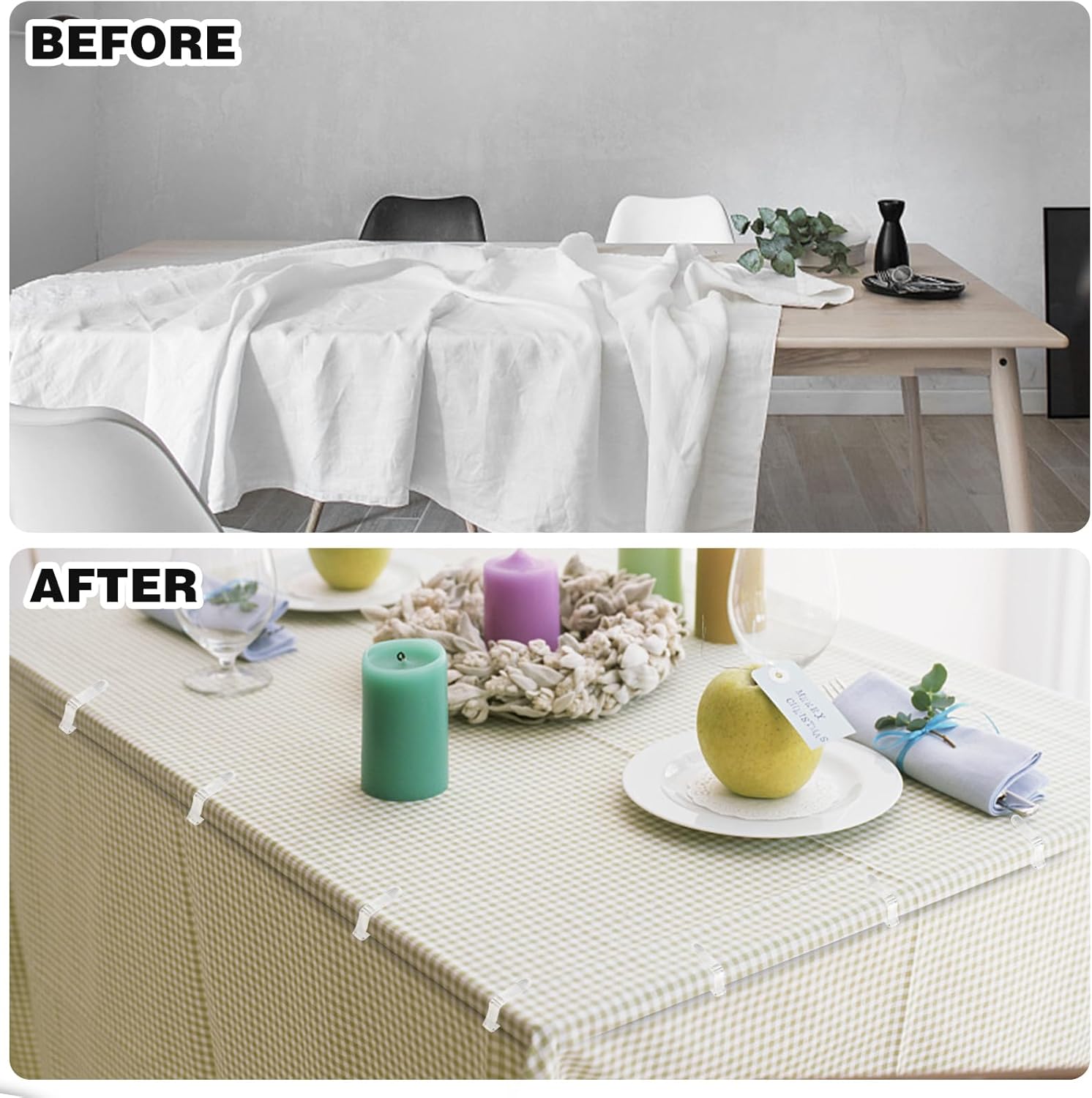 - 【Keep the Tablecloth Flat】The table cover clips can firmly clamp your tablecloth, the tablecloth will not slide and wrinkle, and the tablecloth will not slip due to dragging items on the table. It is one of your great household items. These clear picnic table clips are invisible and hardly noticeable, the table skirt clips can help you keep the tablecloth neat and flat.