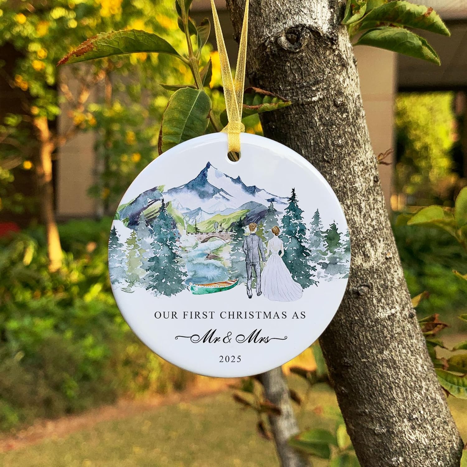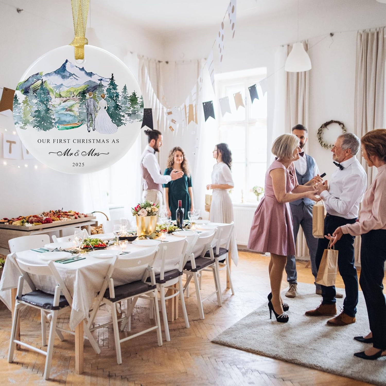 Our First Christmas Ornament Gift 2025,Just Married Ceramic Ornaments as Mr and Mrs,First Year Christmas Hanging for Couples,Newlywed Xmas Wedding Decoration with Gift Box and Card (2.9")