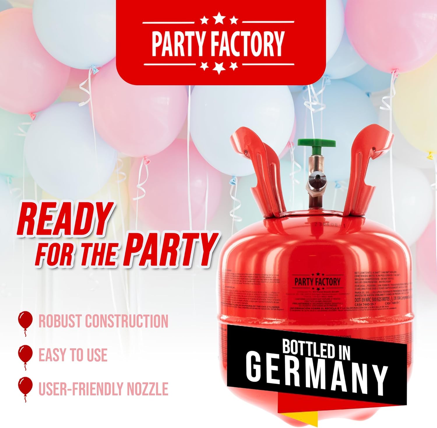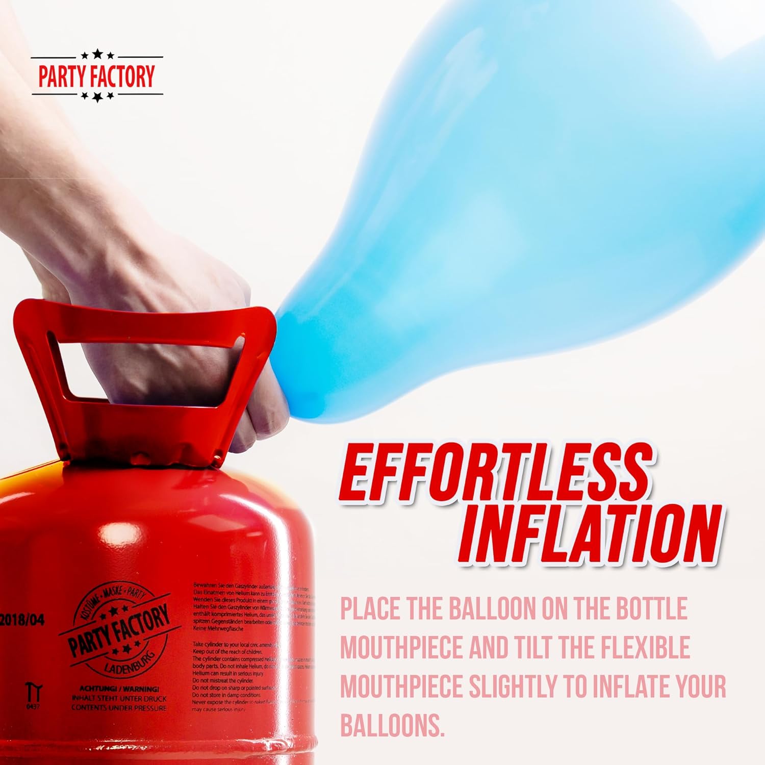 - HELIUM BALLOONS: The helium tank is ideal for inflating latex balloons, foil balloons, LED balloons and more! Thanks to the practical nozzle, your balloons are easily inflated in next to no time.