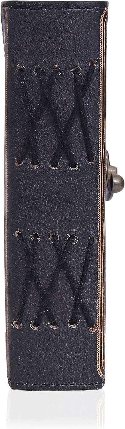 - BEAUTIFULLY CRAFTED: Our handmade artisan leatherbound spellbook grimoire journals are crafted from genuine leather. The black colouring gives it a beautiful antique vintage feel. Being hand-made from natural leather. The cover features a beautiful gold designing..