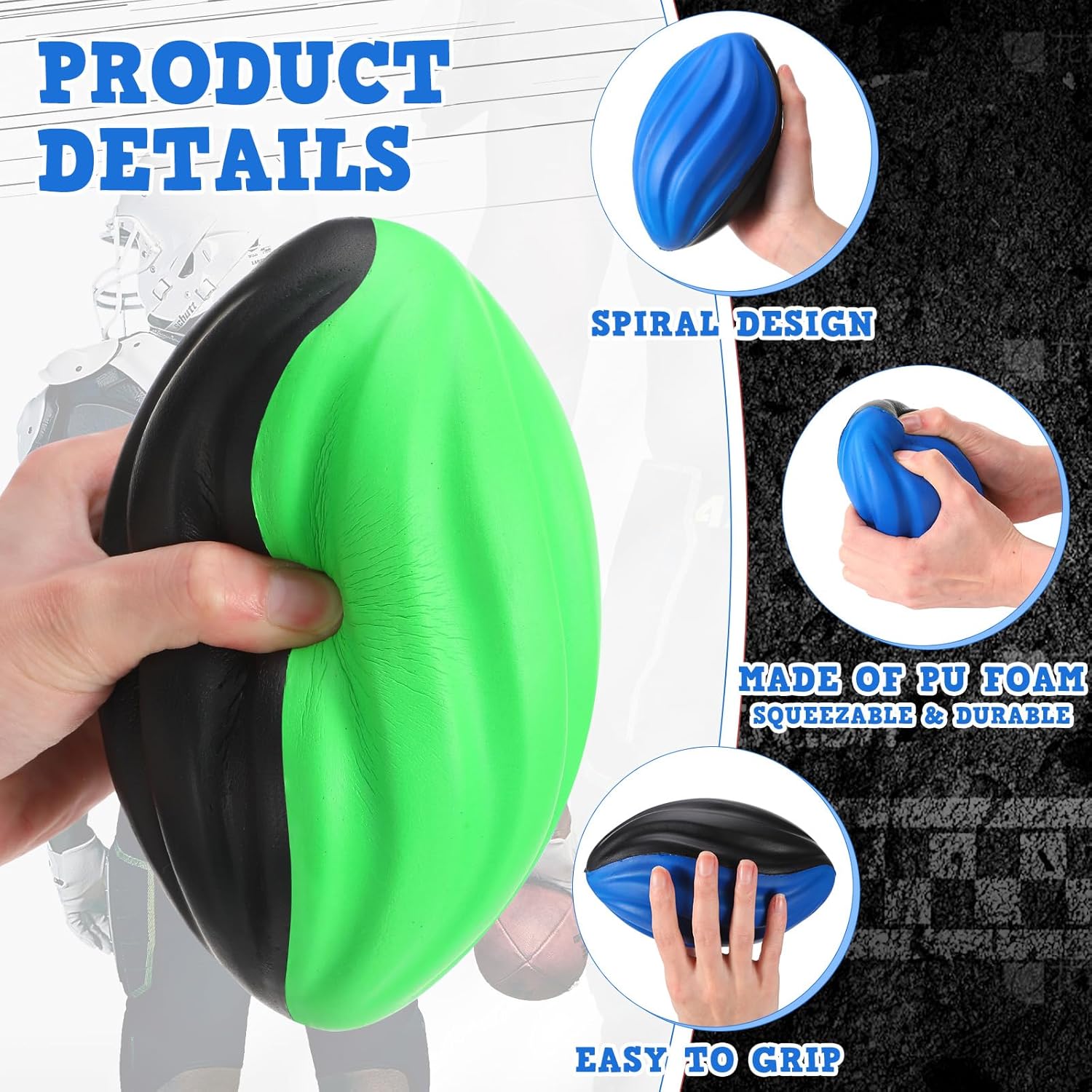 - Easy to Grip: mini football bulk uses unique spiral groove design to make the foam football easier to grip and throw, with its mini size, it is great for little hands and make an excellent choice for little family members' football games, crafted from quality foam material, these footballs are designed to be soft and lightweight, ensuring safe play for young people