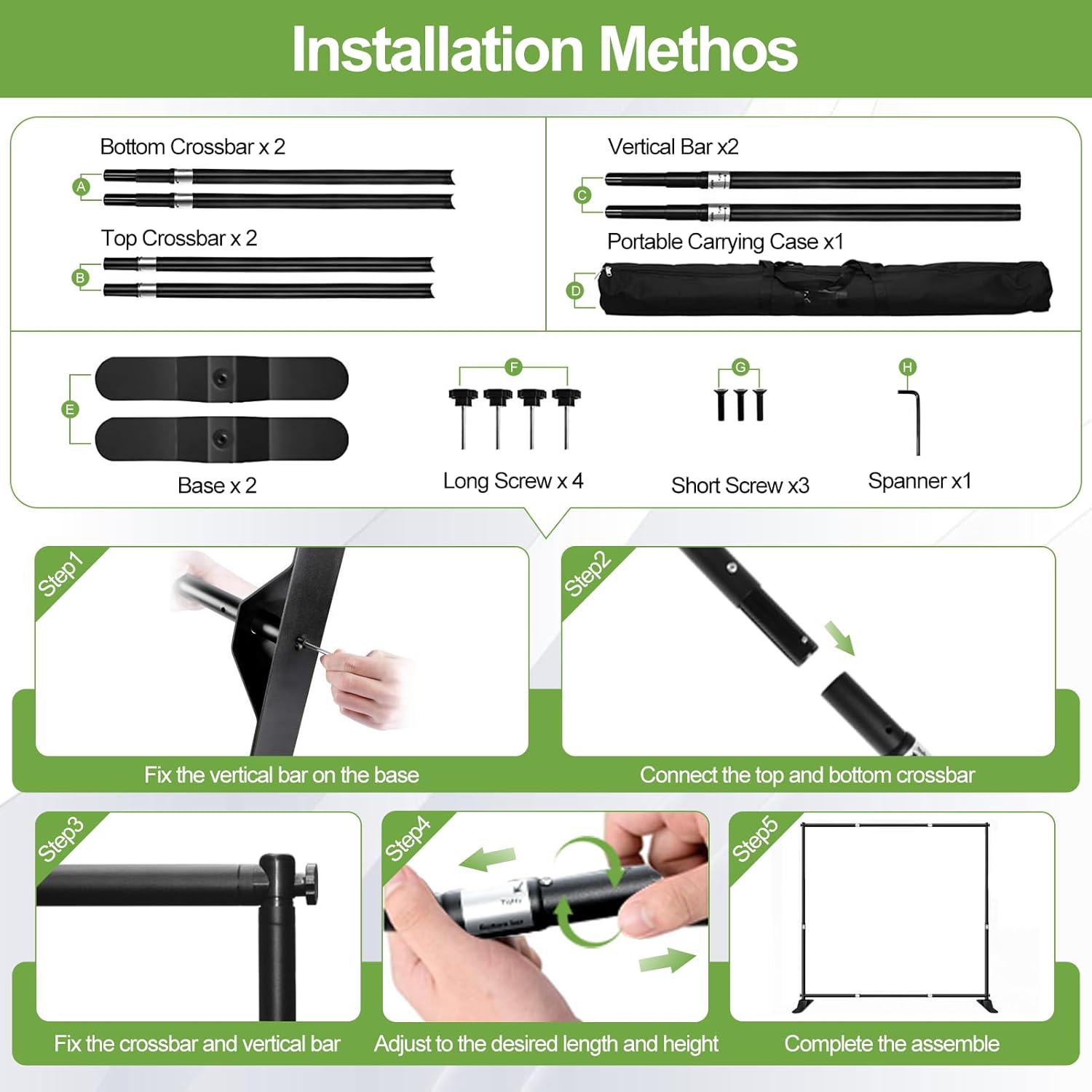 - 【Upgraded Professional Banner Stand】The backdrop banner stand is made of aluminum alloy, locking System Upgrade, the screw fastening connection of the crossbar adopts a widened design to prevent the middle of the cross bar from sagging. More stable than ordinary support bar.