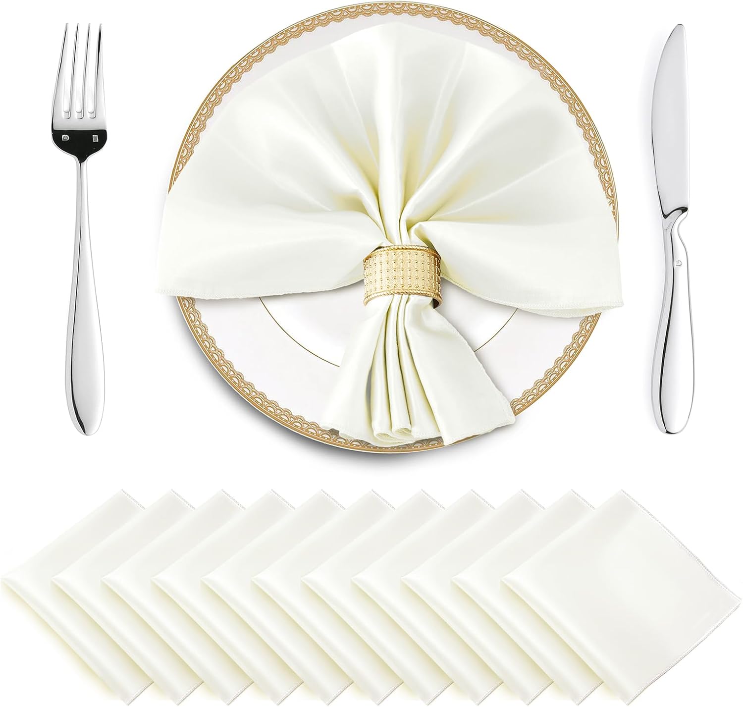 - ❤What You Can Get: Each package includes 16 pieces of satin napkins 17" x 17" in ivory color, which are suitable to decorate a table accommodating 12 - 16 diners. Adequate quantity for home daily use or party used. These satin dinner napkins will make your table sparkle brightly and beautifully.