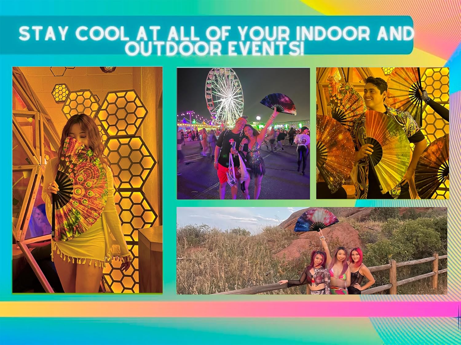 - THE BEST WAY TO COOL OFF✨: Our large AND mini fan will provide you with a way to cool off at all of your events. We know how hot it can get inside a large concert venue or indoor event, which is why we wanted to create a fan with eye-catching designs and versatility and convenience