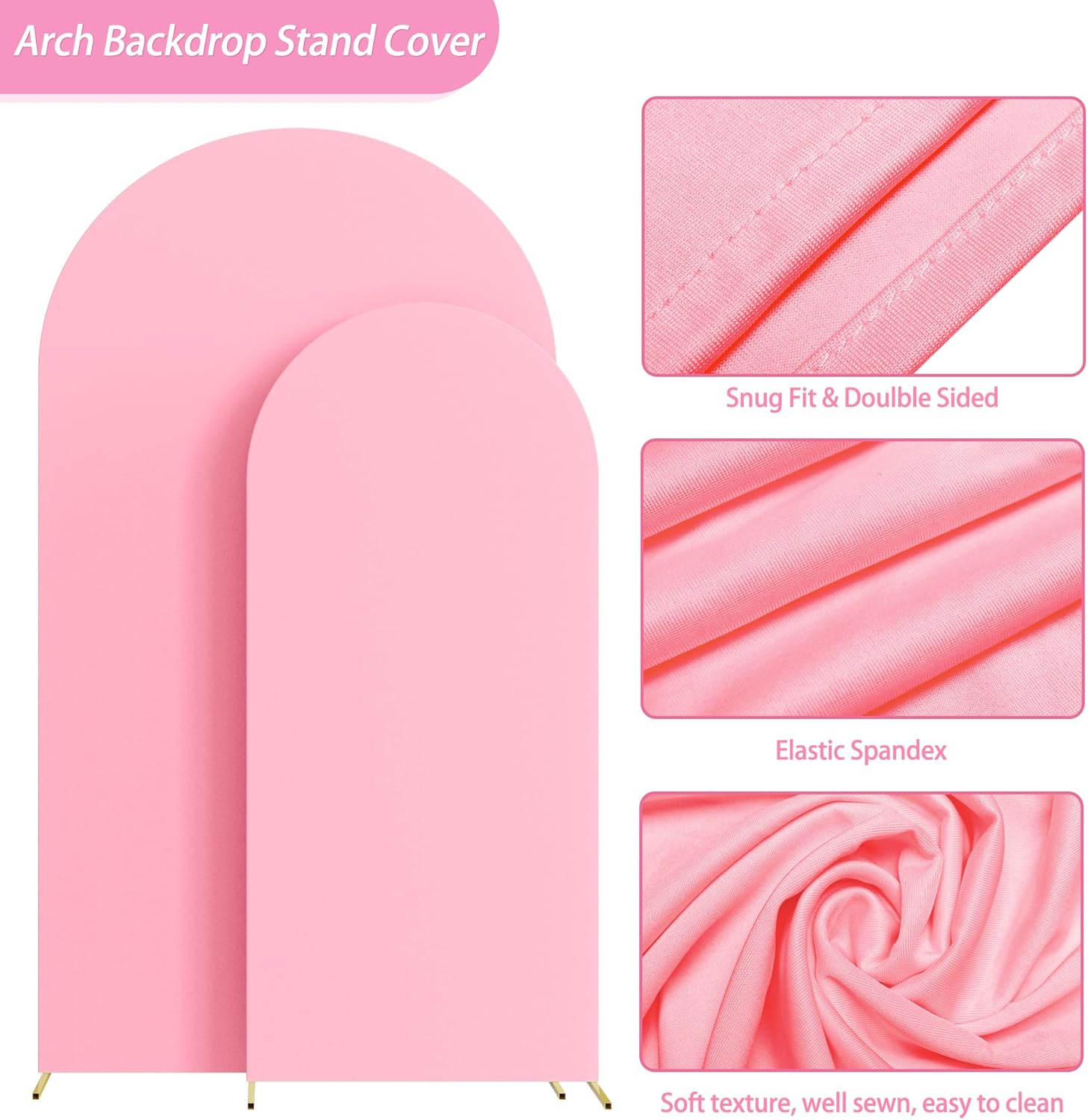 Fomcet Set of 2 Wedding Arch Covers 6FT, 7.2FT Pink Arch Backdrop Cover 2-Sided Fitted Round Top Spandex Fabric for Birthday Party Baby Shower Wedding Arch Stand Decoration