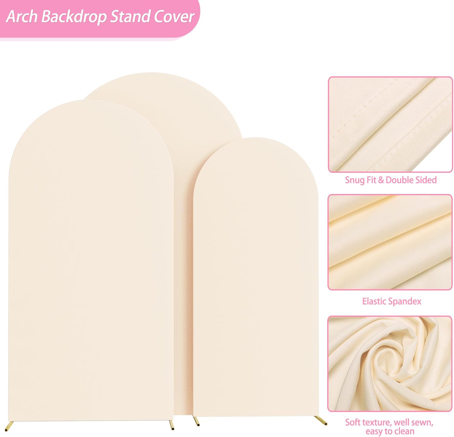 Fomcet Wedding Arch Cover 7.2FT, 6.6FT, 6FT Beige Spandex Fitted Fabric Arch Backdrop Cover Set of 3 Round Top Chiara Backdrop Stand Covers for Wedding Ceremony Birthday Party Baby Shower Decor