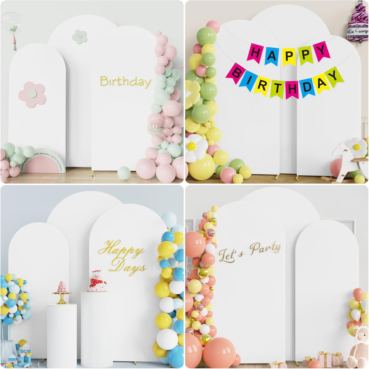 Fomcet Set of 3 Wedding Arch Cover 6FT, 6.6FT, 7.2FT White 2-Sided Round Top Spandex Arch Backdrop Cover Fitted Fabric for Birthday Party Baby Shower Wedding Arch Stand Decoration