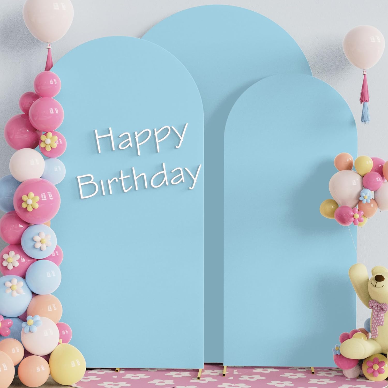 Fomcet Wedding Arch Cover 7.2FT, 6.6FT, 6FT Dusty Blue Spandex Fitted Fabric Backdrop Set of 3 Round Top Chiara Arch Backdrop Stands Covers for Wedding Ceremony Birthday Party Baby Shower Decor