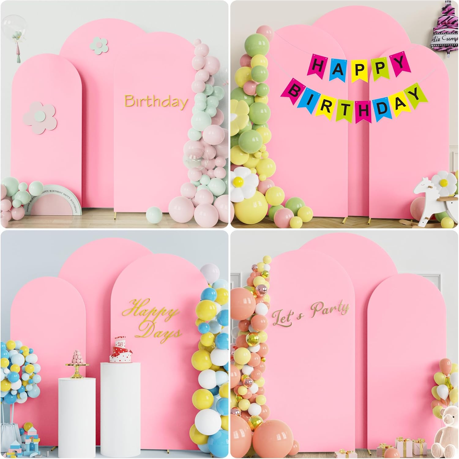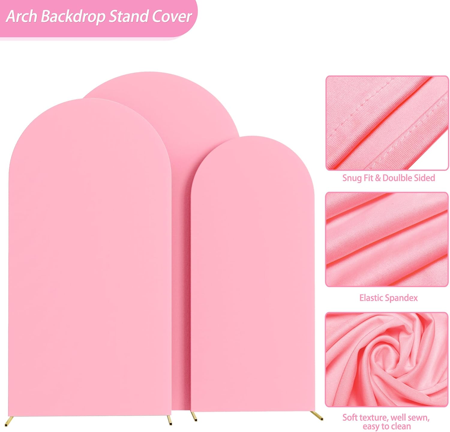 - 【Package Includes】There is a Pink 6FT x 2.6FT, 6.6FT x 3.3FT and 7.2FT x 4FT spandex arched backdrop cover in the package. Note: the elasticity of spandex fabric may create some dimensional errors and may be some light transmission in sunlight. And due to the flexible, it is simple to use and like putting a pillowcase over a pillows. If you have any questions about our products, please feel free to contact us.