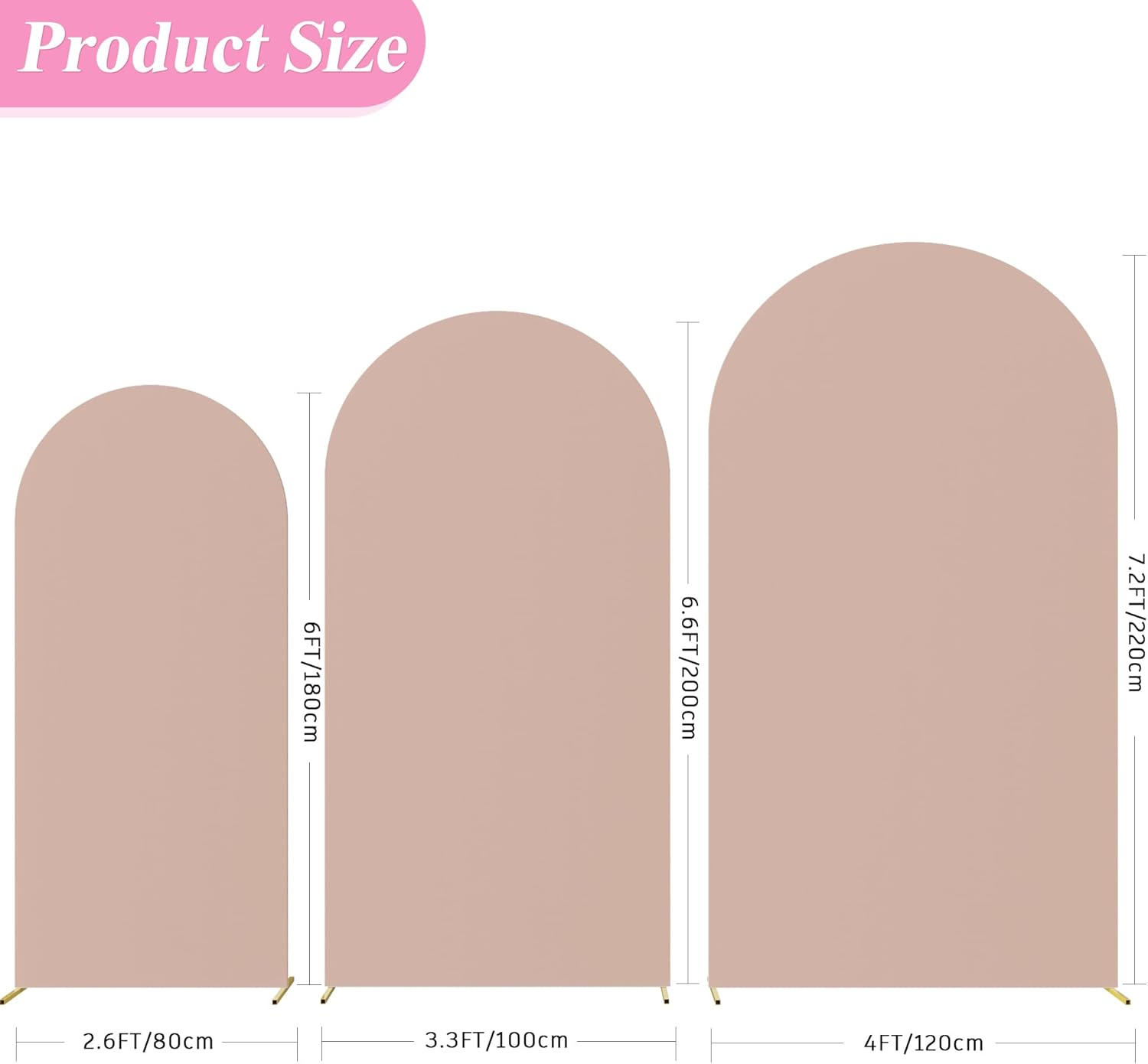 Fomcet Wedding Arch Cover 7.2FT, 6.6FT, 6FT Nude Spandex Fitted Fabric Arch Backdrop Cover Set of 3 Round Top Chiara Arched Backdrop Stands Covers for Wedding Ceremony Birthday Party Baby Shower