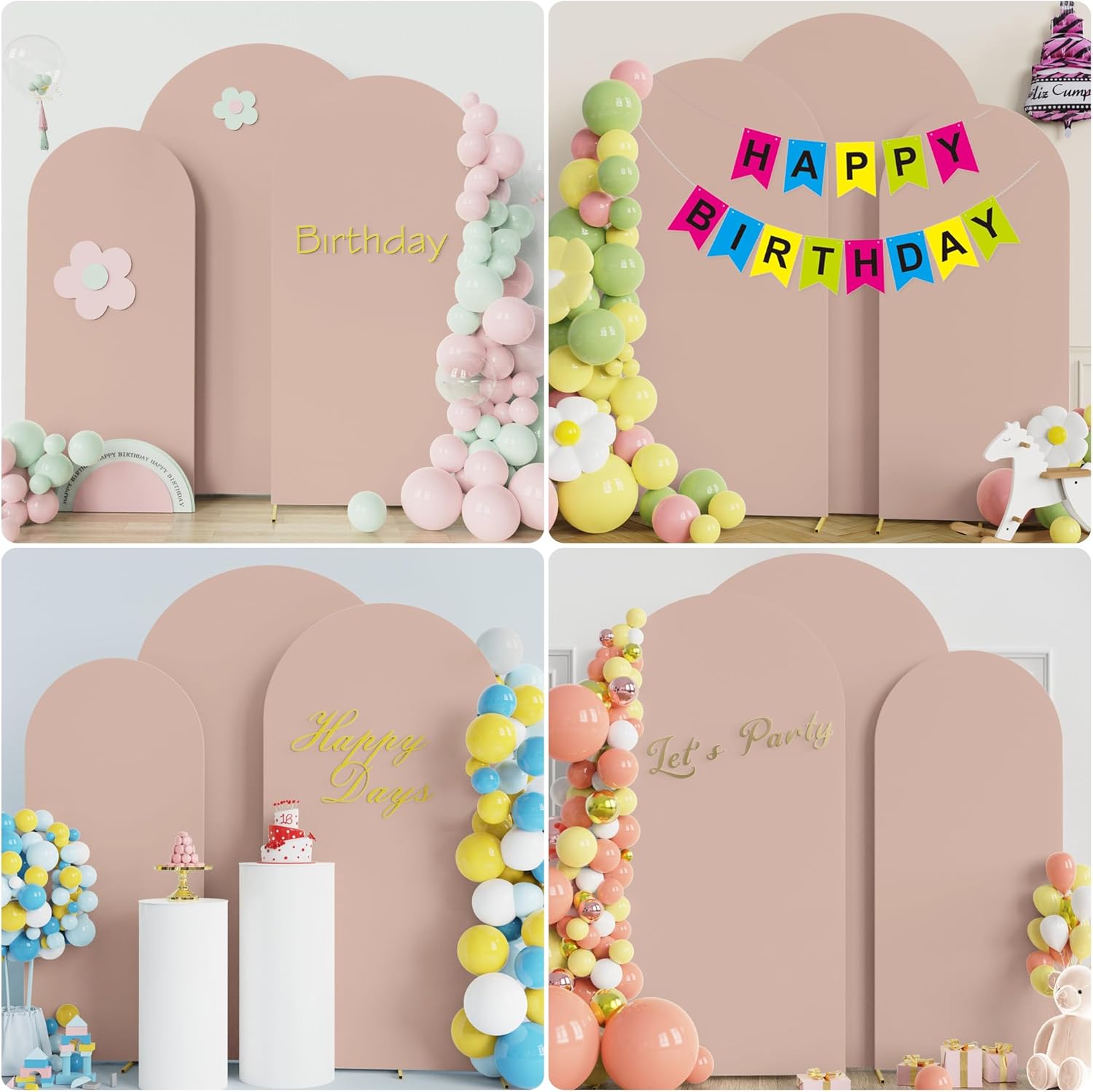 - 【Round Top & Double Sided Arch Covers】The arch cover backdrop fabric is designed as a round top and double-sided, which is suitable for arch stand events decorations to add more color. Due to the 2-sided design make it has a wrapping feeling forming a one-piece visual sensation no matter which angle.(Not include frames)
