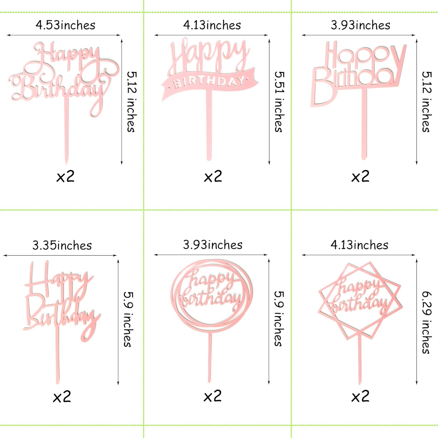 - Size: The Happy birthday cake toppersโ height is approx.5.1 - 6.3 inches, the width is approx. 3.4 - 4.5 inches. Ideal for 6-10โ cakes.
