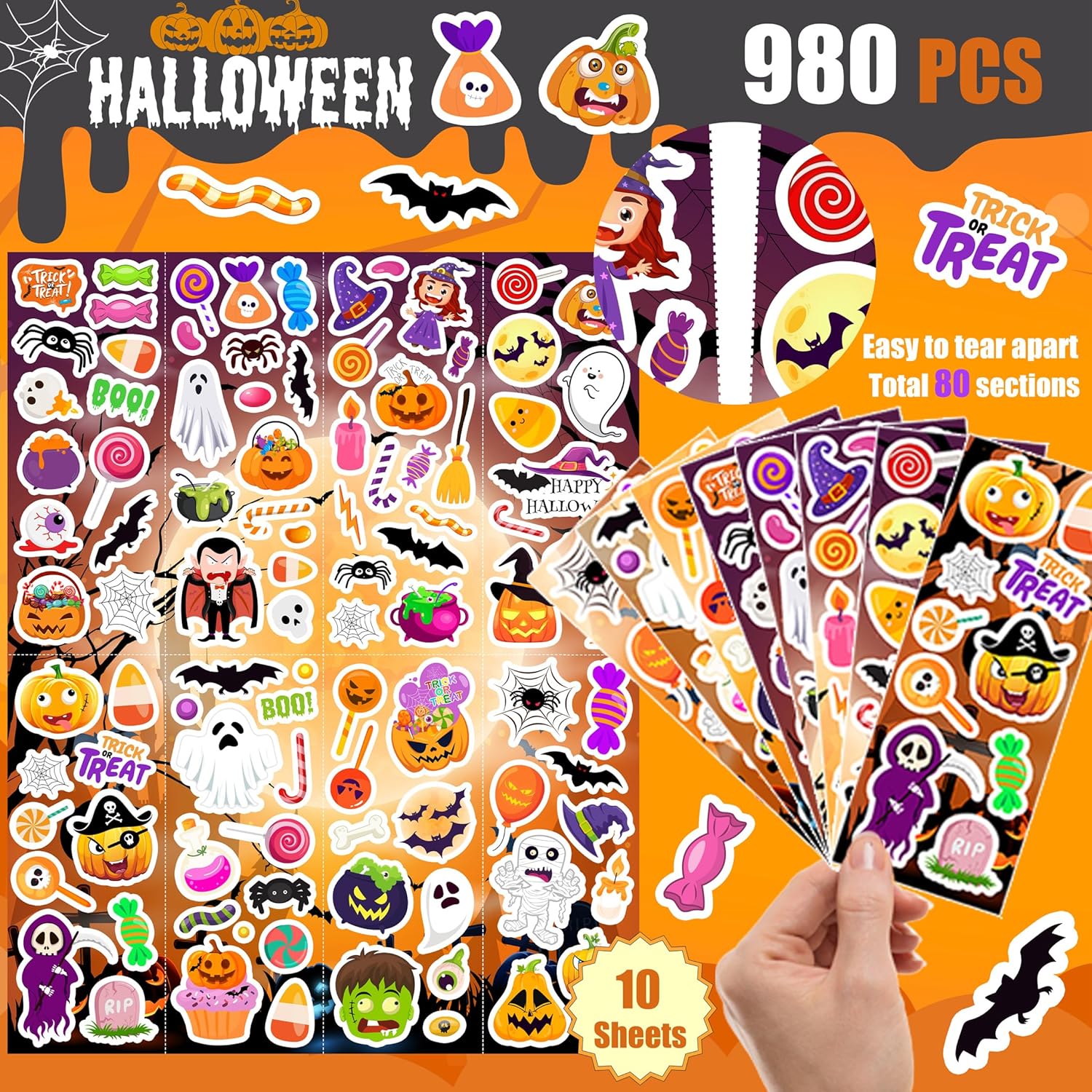 Halloween Stickers 980Pcs Assorted Halloween Stickers for Kids Halloween Party Favors, Classroom Crafts, Goodie Bags, Decorations, Trick or Treat Halloween Party Supplies