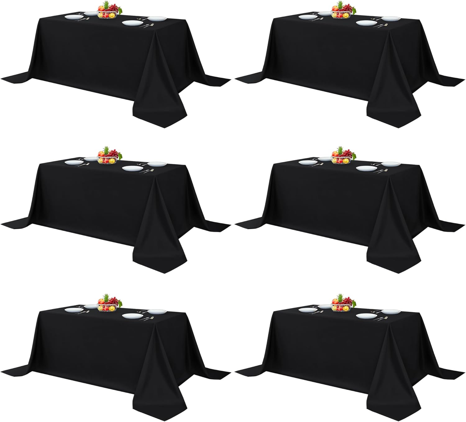 Fitable Black Tableclothes for Rectangle Tables, 6 Pack - 90 x 132 Inch - Reusable and Elegant Tablecloths, Polyester Fabric Table Covers for Wedding, Party, Banquet, Formal Events
