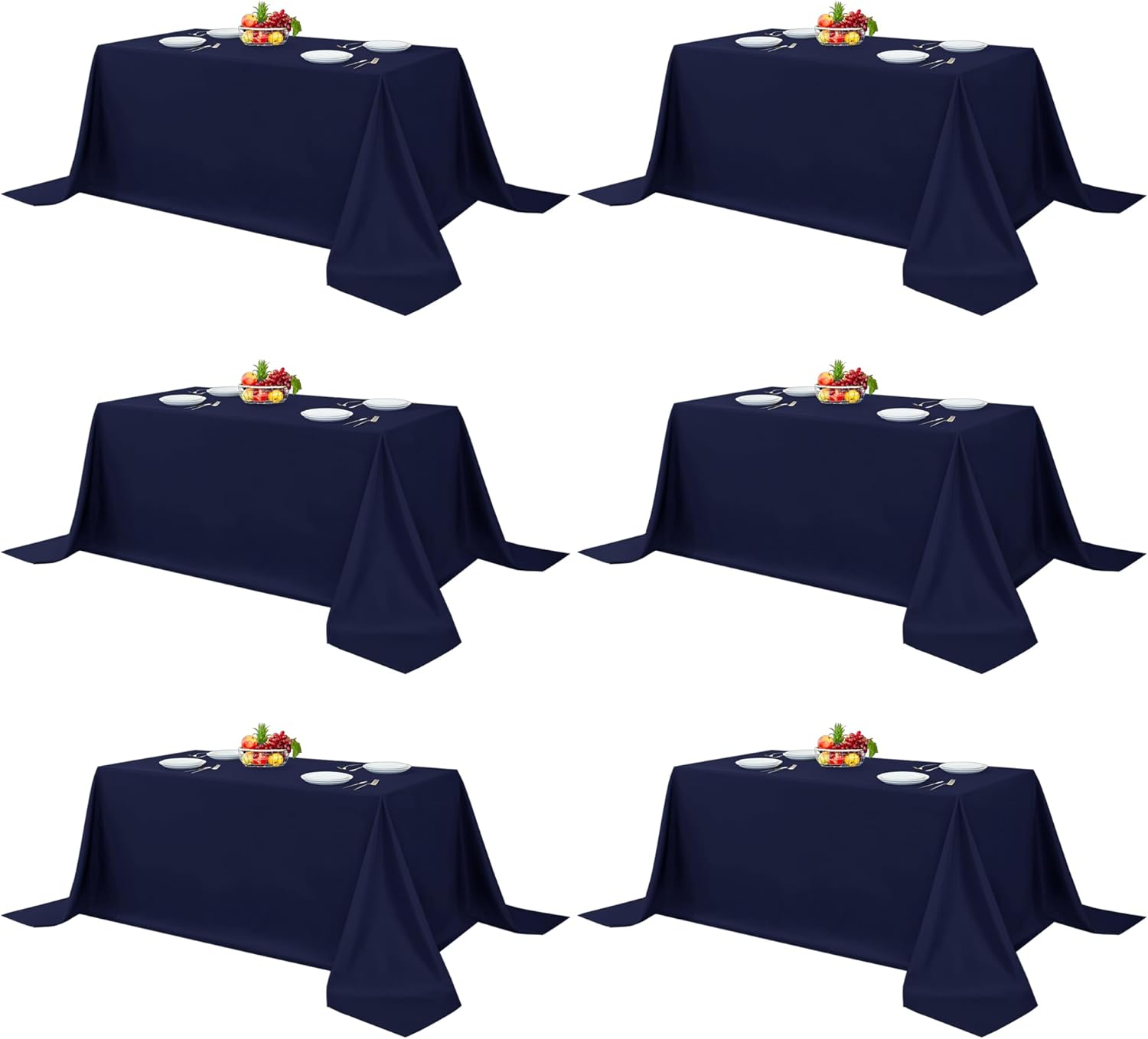 Fitable Navy Rectangle Table Clothes, 6 Pack - 90 x 156 Inch - Reusable and Washable Tablecloths, Polyester Fabric Table Covers for Wedding, Party, Banquet, Formal Events