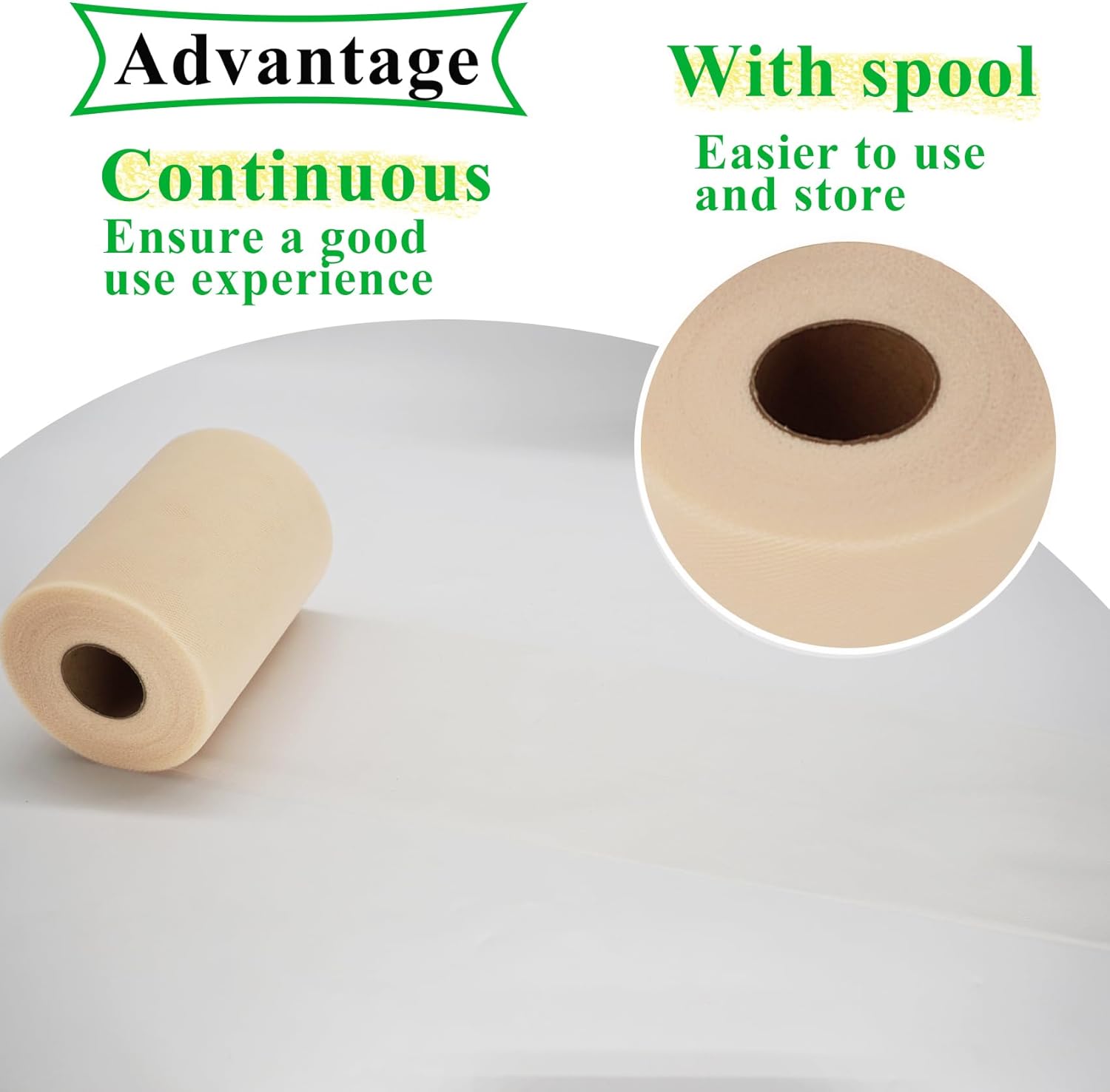 Beige Tulle Fabric Rolls 6 Inch by 100 Yards (300 feet) Fabric Spool Tulle Ribbon for DIY Tutu Gift Wrapping Baby Shower Birthday Party Wedding Decorations Christmas Craft Supplies