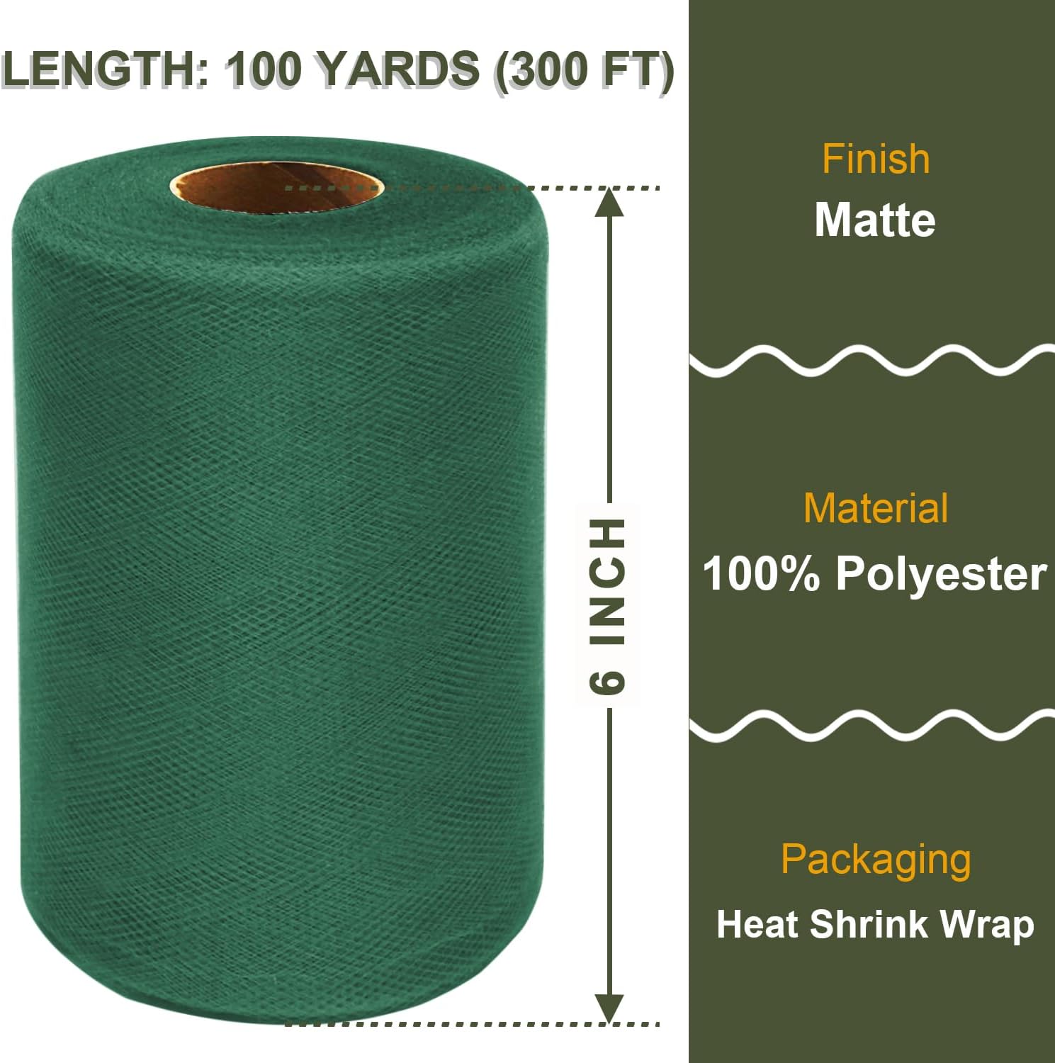 Hunter Green Tulle Fabric Roll 6 Inch X 300 FT (100 Yards) Matte Tulle Ribbon Netting Mesh Spool for DIY Tutu Skirt Wedding Bow Gift Wrapping Baby Shower Christmas Party Halloween Decorations
