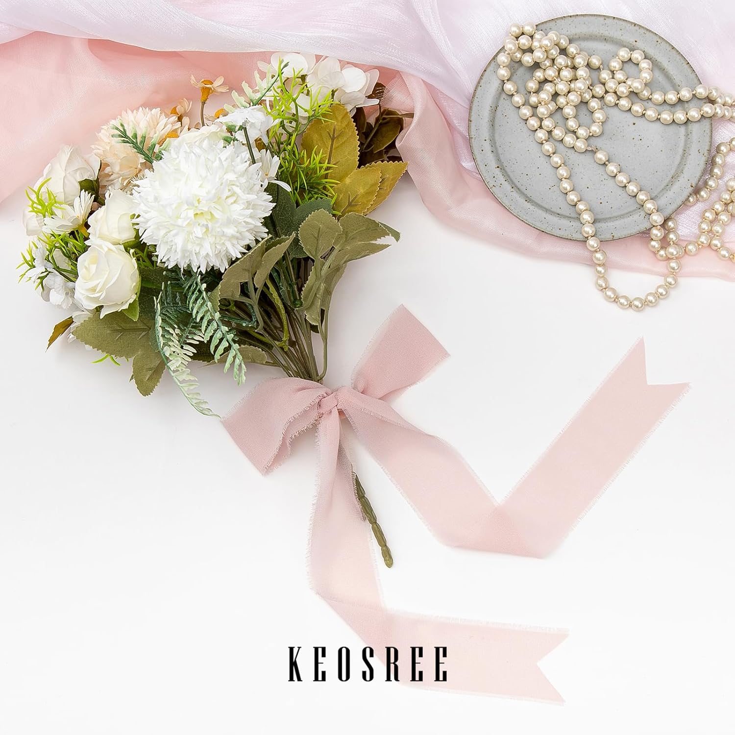 - đăPREMIUM MATERIALăKEOSREE Chiffon Silk Ribbon is made of polyester, smooth and soft touch, as light as silk. You can easily cut to make your decoration more advanced and exquisite.