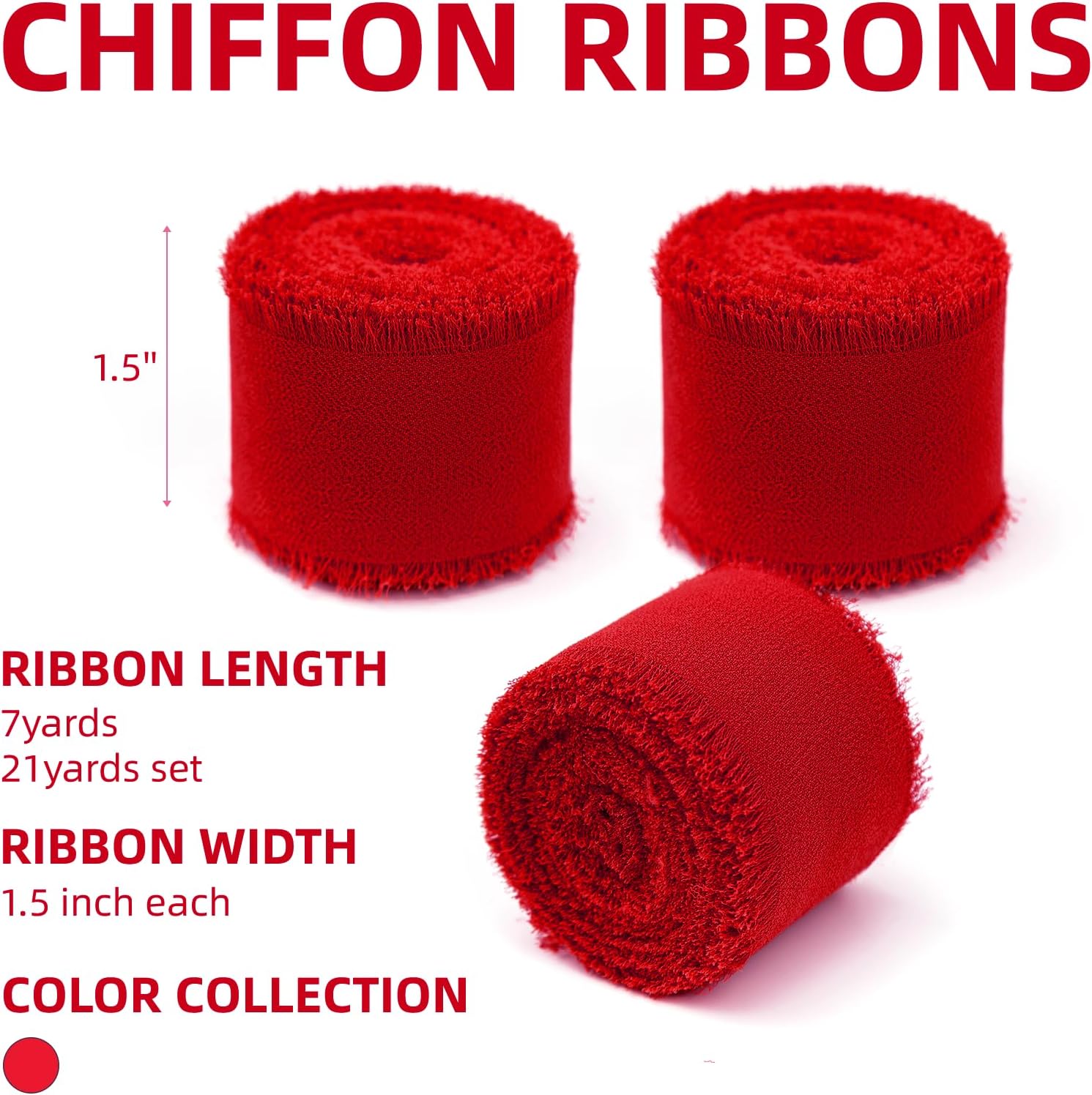 - 【WHAT YOU GET】You will get 3 rolls Chiffon ribbon. 1.5" wide x 7Yd per roll, 21 yards in total.