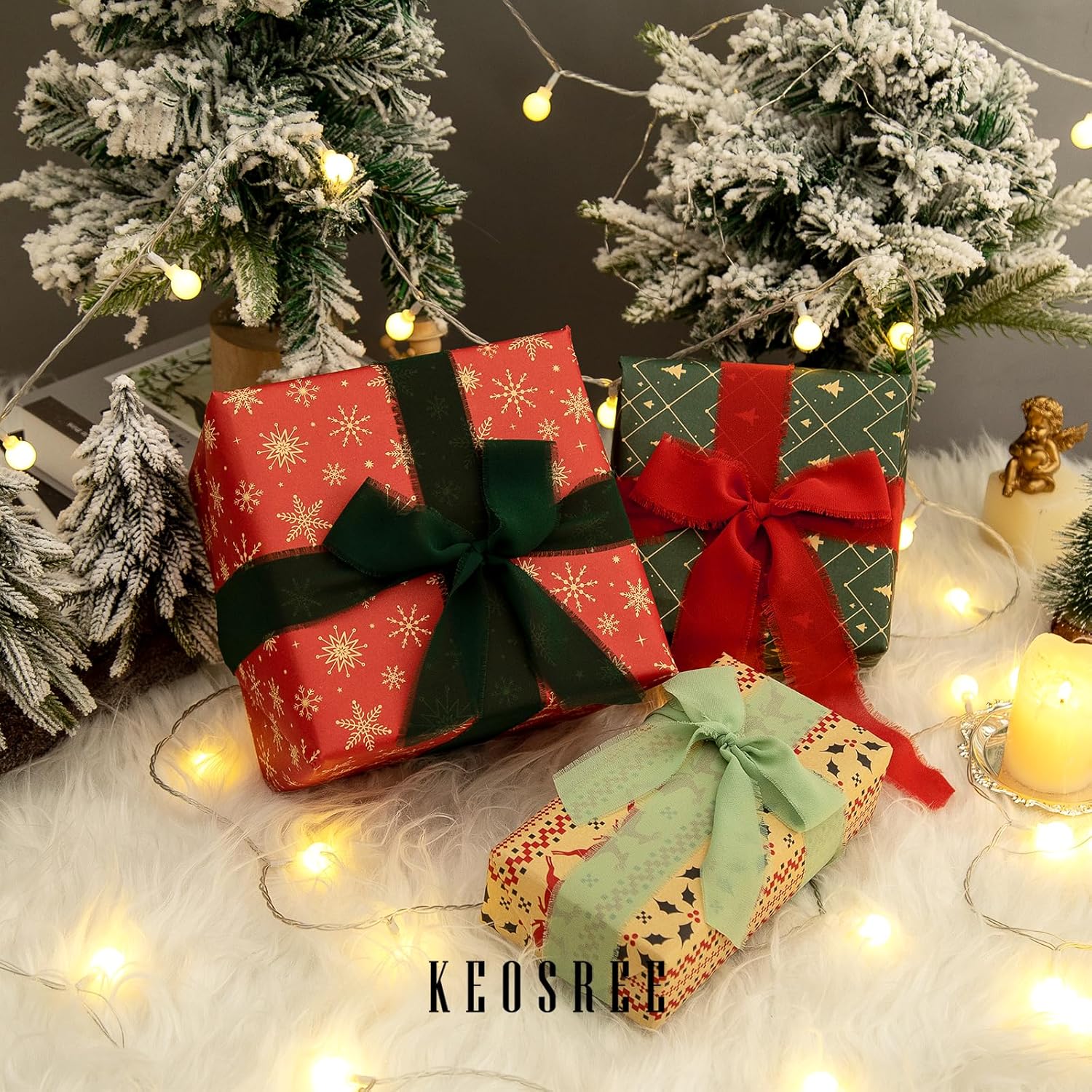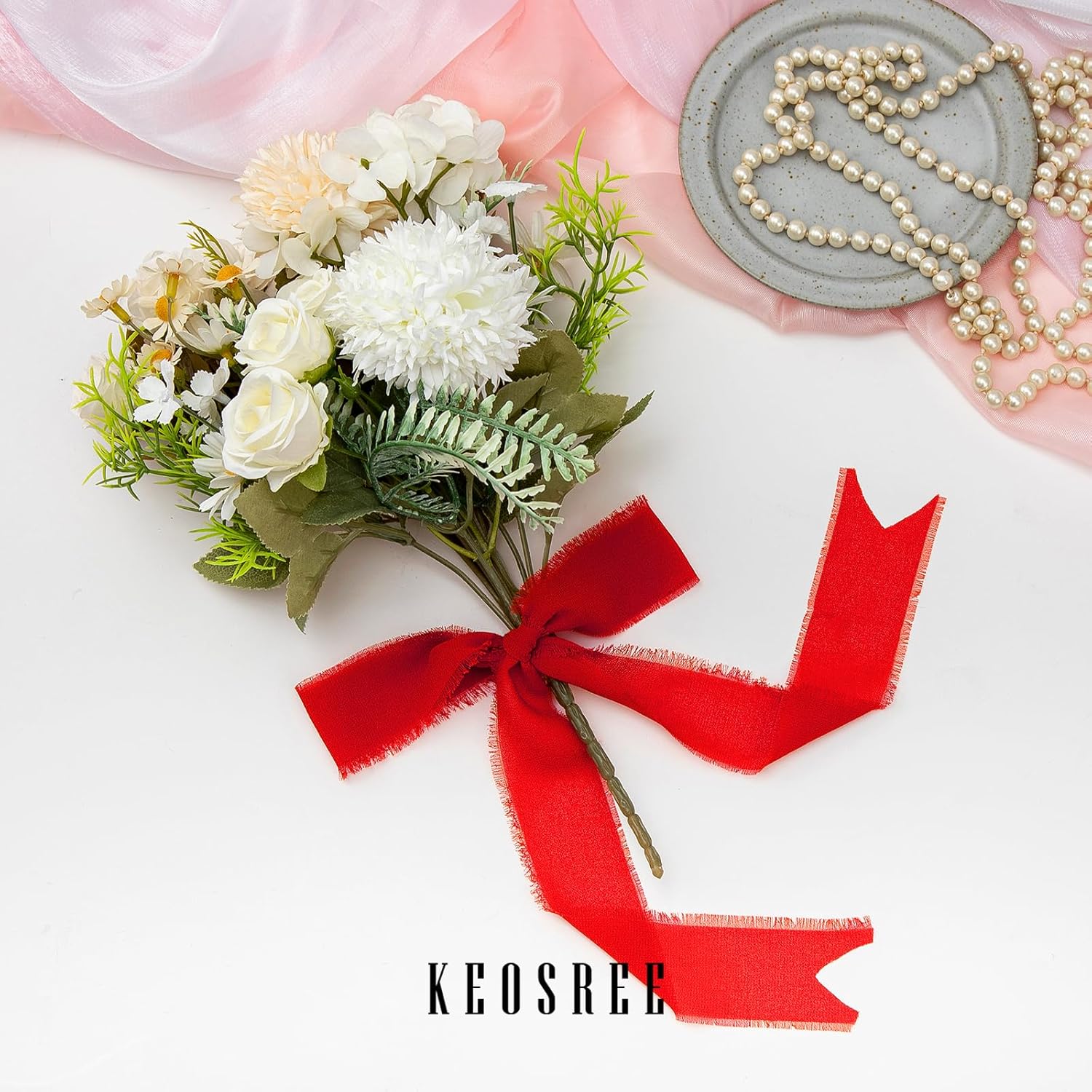 - 【PREMIUM MATERIAL】KEOSREE Chiffon Silk Ribbon is made of polyester, smooth and soft touch, as light as silk. You can easily cut to make your decoration more advanced and exquisite.