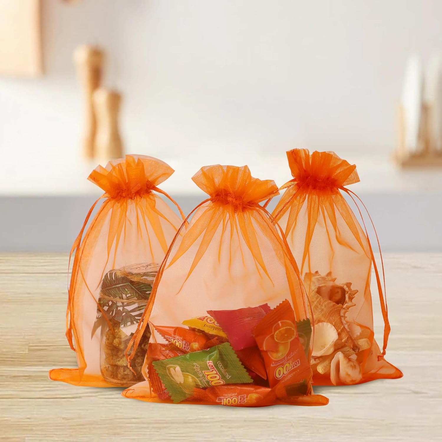Wudygirl 100PCS 5X7 Inch Organza Bags - Jewelry, Drawstring, Sheer Organza Bags for Halloween, Christmas, Parties, Weddings, Baby Showers (Orange 5X7)