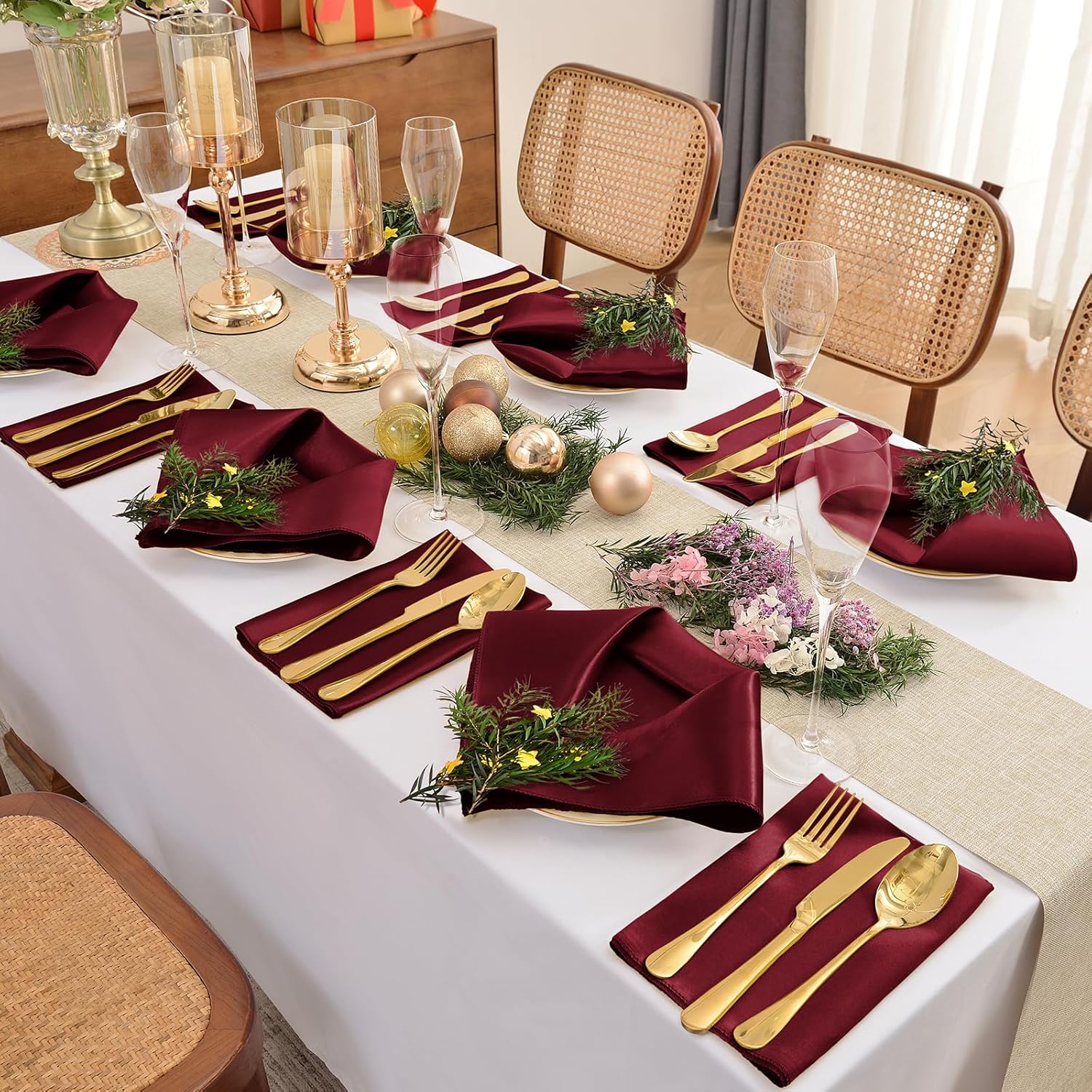 - ❤Versatile and Convenient Sizing: Our silky napkins feature appropriate dimensions of 17 x 17 inches, allowing you the flexibility to fold them neatly or wrap them around utensils to enhance the overall appeal of your table setting. The sizing provides versatility in usage, making them suitable for various occasions and table decoration options.