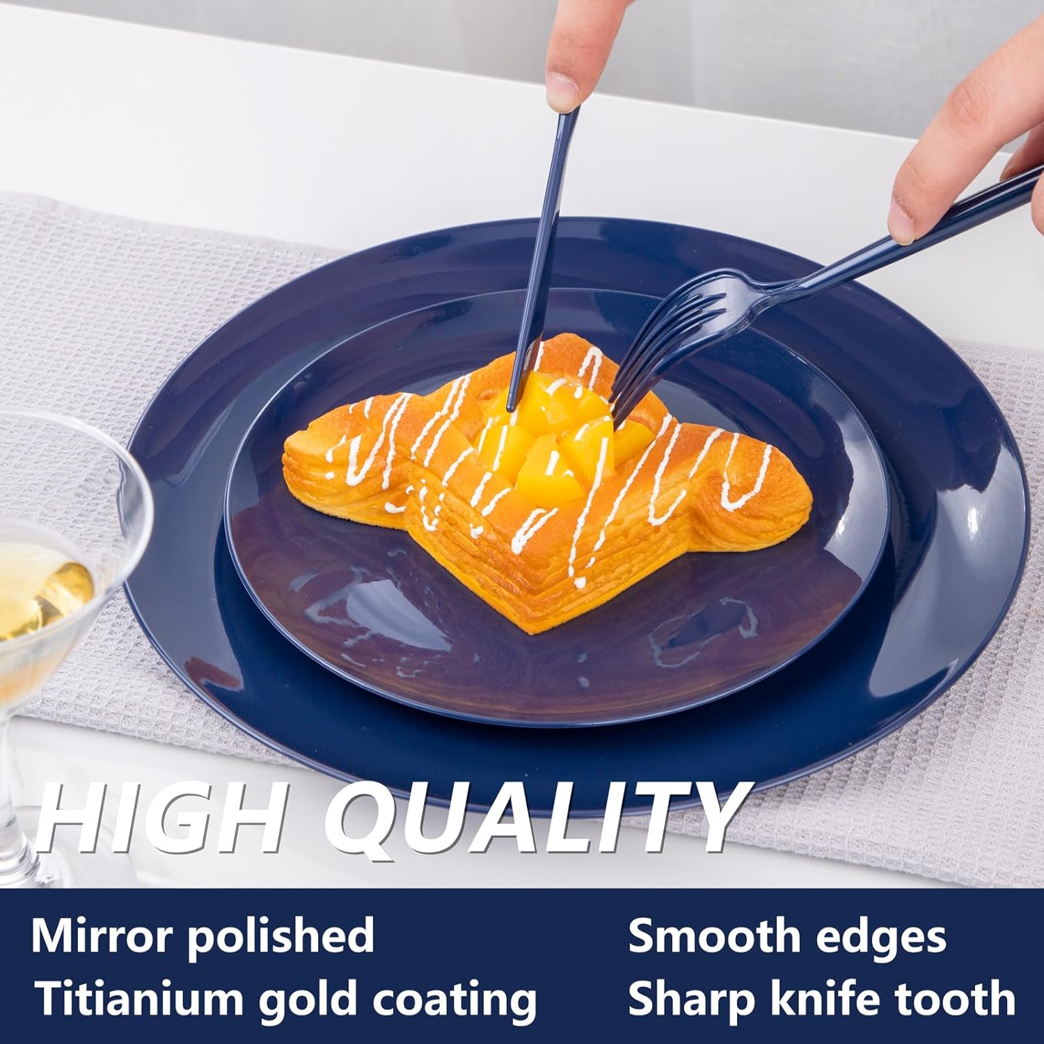 - [Easy To Clean]-If you want to have more time to enjoy the party, you can throw away the blue plastic silverware after the event, or you can hand wash the durable plastic silverware for next time.
