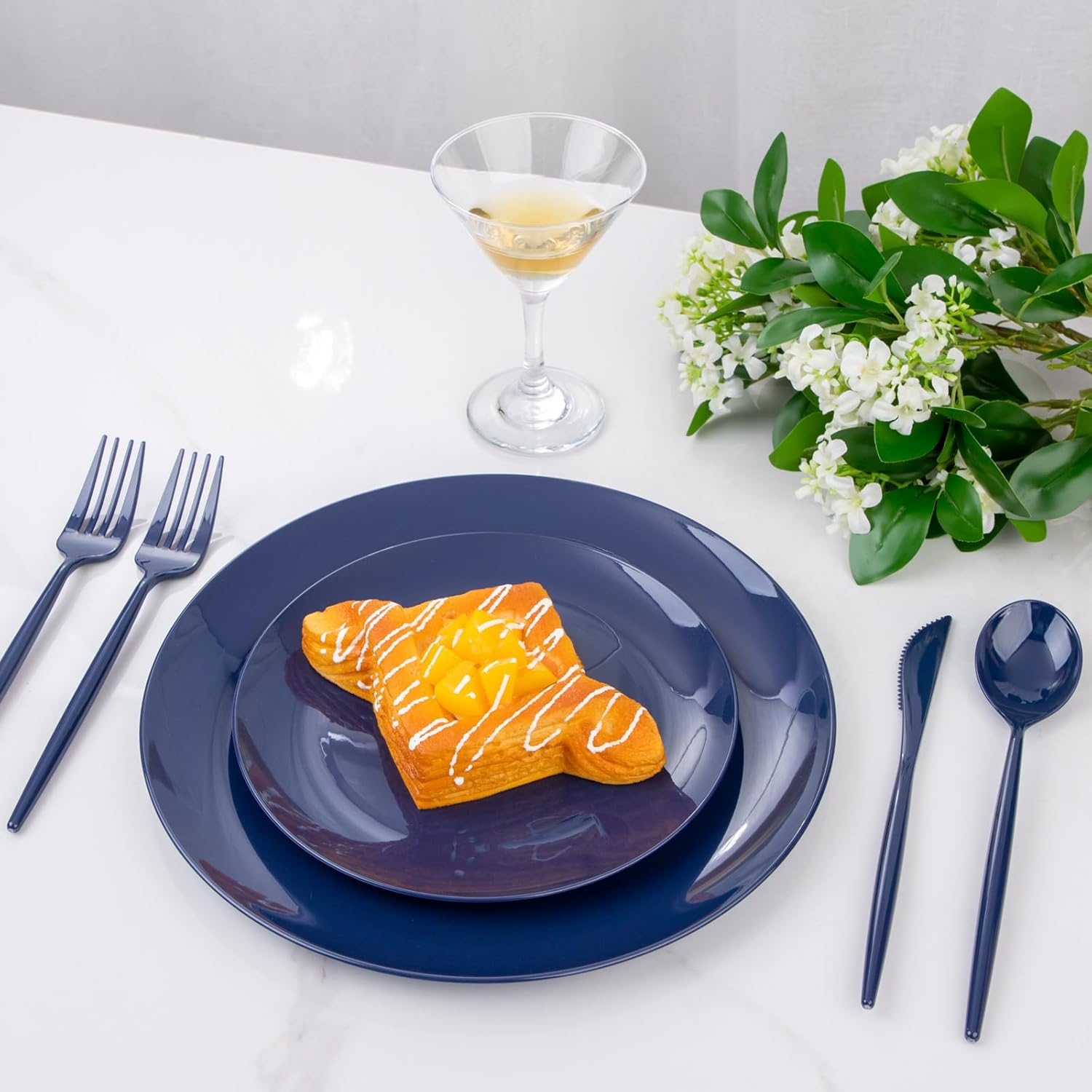 - [Blue Plastic Silverware Heavy Duty]-The blue plastic cutlery are higher quality which are made by pure PS material and stronger in the handle part. Blue plastic dinnerware set are made of 100% food grade plastic, BPA free and no toxic.