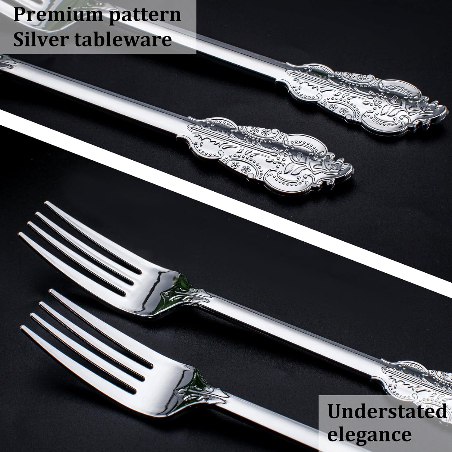 - WIDELY APPLICABLE: WDF silver plastic utensils are enough for your use in any scene like festive gatherings, birthdays, parties, weddings, restaurants, daily meals, etc. The plastic silverware will add elegance and luxury to your dining table.