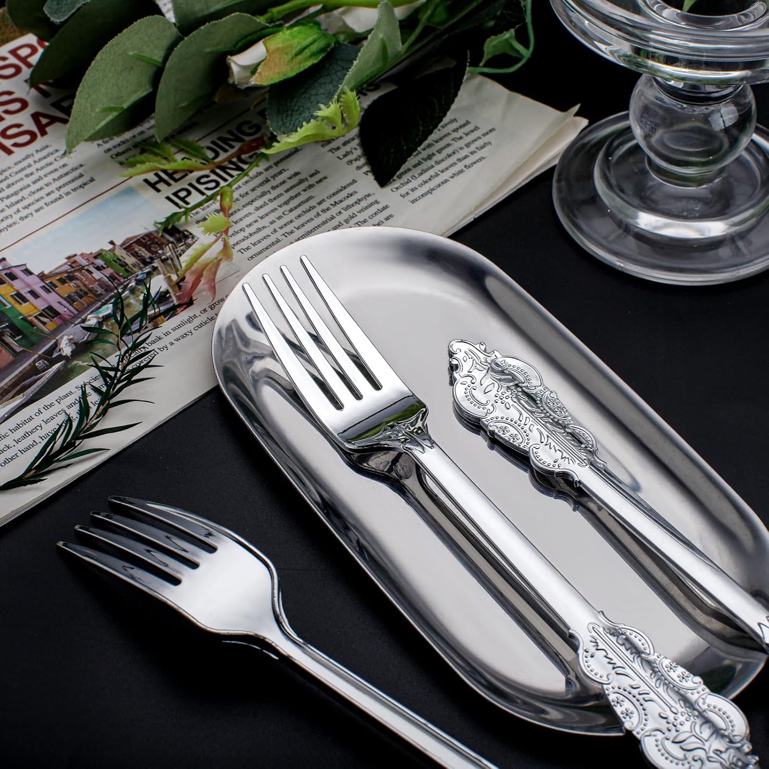 - STURDY AND DURABLE: These 7.48 inch silver forks are sturdy & durable & smooth surface, you can use them to enjoy food at parties without worrying about breaking. The sharp fork can easily penetrate steak, desserts, and more.