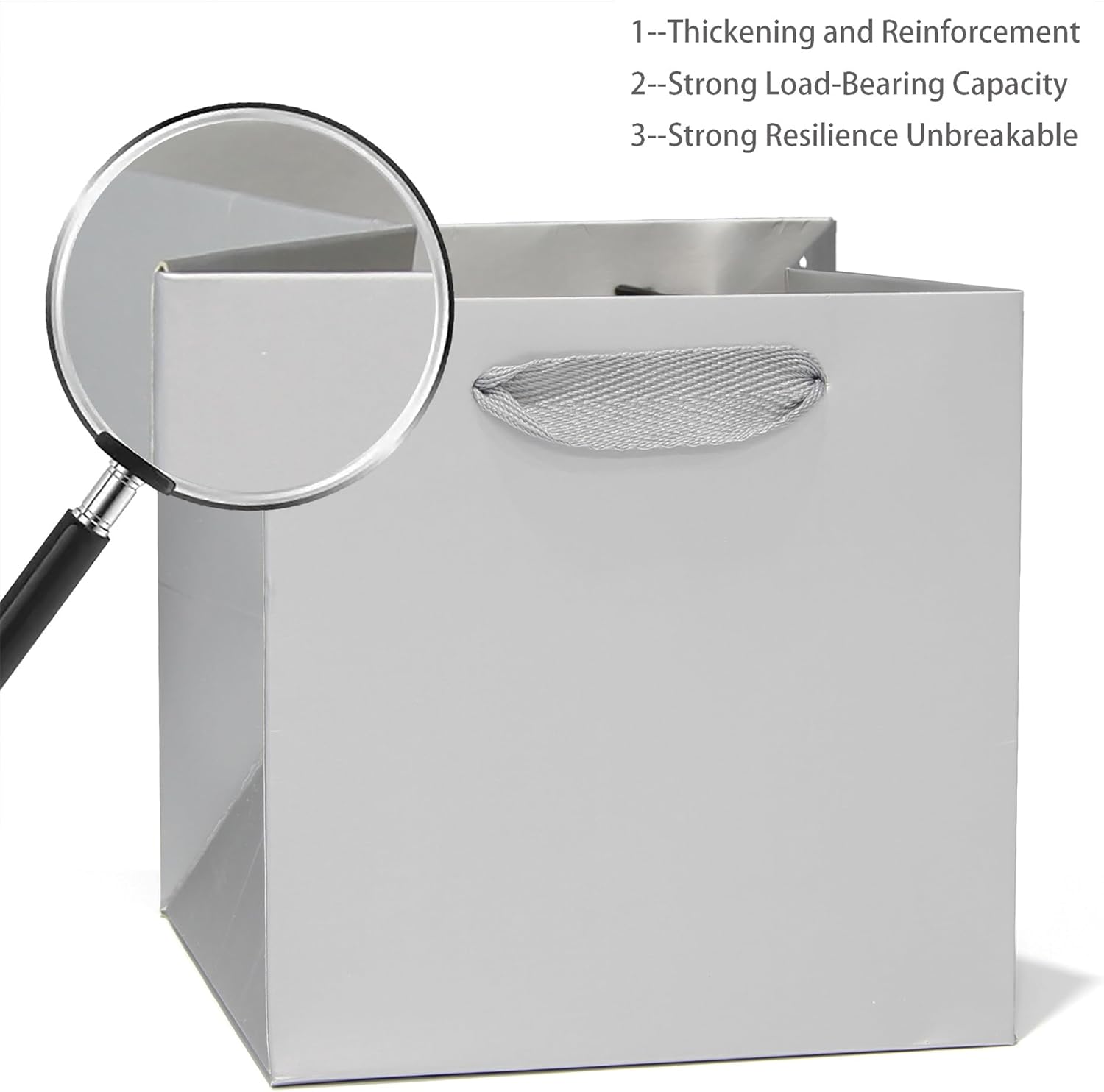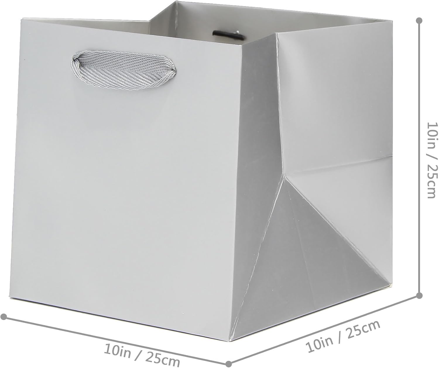 Silver Gray Paper Gift Bag 10 in Paper Gift Box Large Square Bottom Kraft Paper Bags with Handles for Wedding Baby Shower Birthday Party (Silver Grey, 10 x 10 x 10 in, 10 CT)