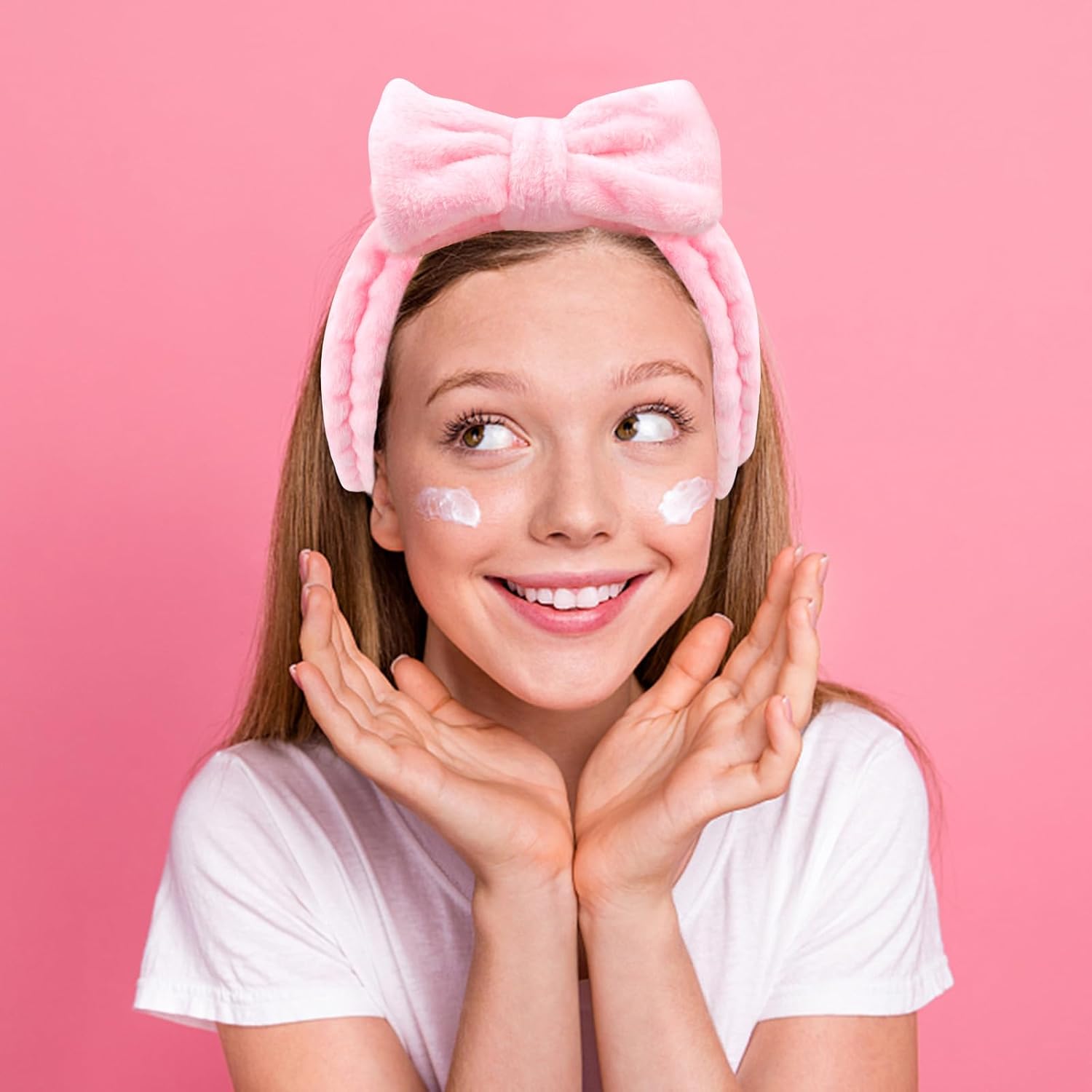 - 8Pcs Bow Spa Headbands: You will receive 8 pieces of pink spa headbands. The spa headband holds your hair in place while you wash your face, put on makeup, or apply a mask