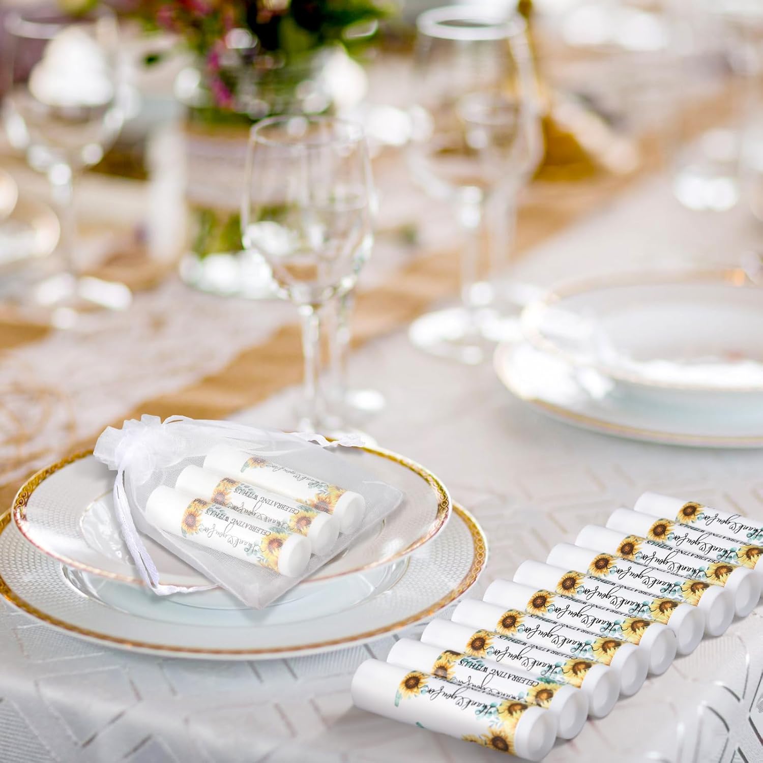 - Lip Balm Favors: you will get 50 pieces of wedding lip balms printed beautiful floral and thankful phrases, cute small wedding souvenirs which smell good and guests will enjoy them